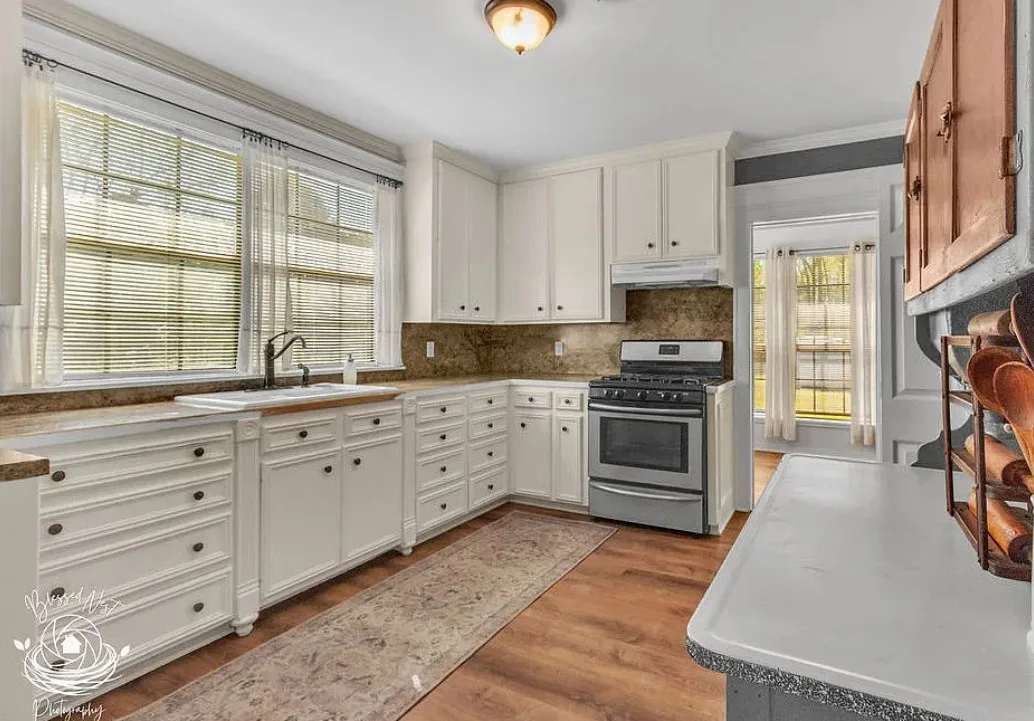 This house has nice curb appeal and landscaping! The porch is nice too! The house was built in 1945. It is located on .59 acre in Shreveport, Louisiana. The house features mature landscaping, brick walkway, nice covered porch, wide baseboards, crown moulding, updated kitchen and wood floors. Two bedrooms, one bathroom and 1,474 square feet. $158,900