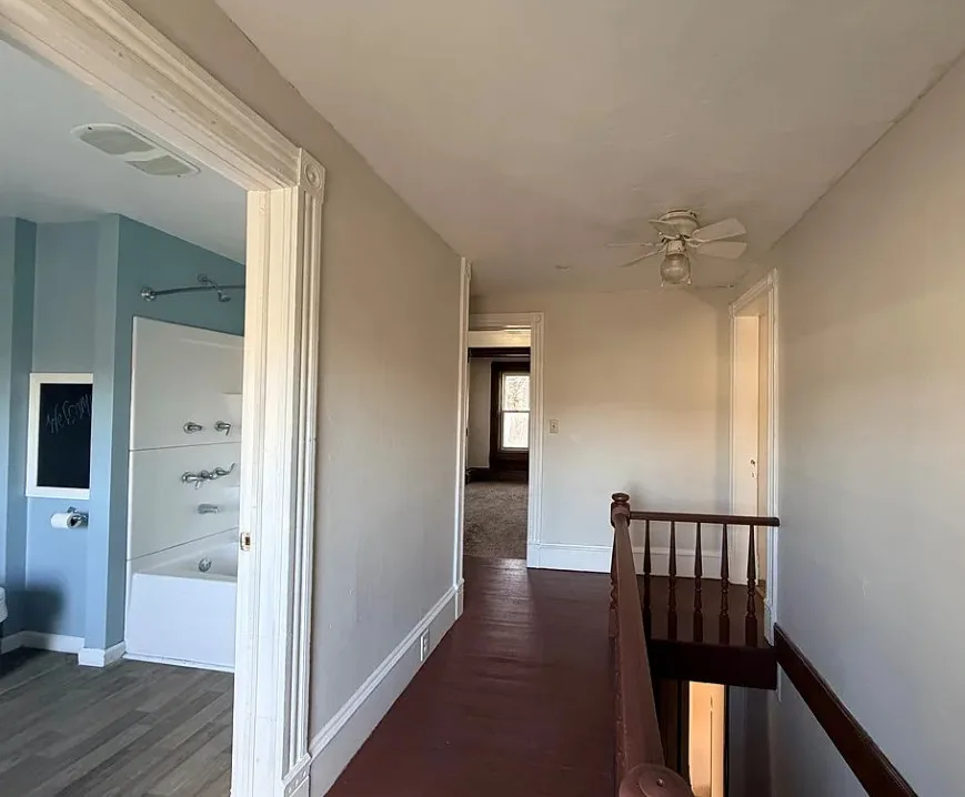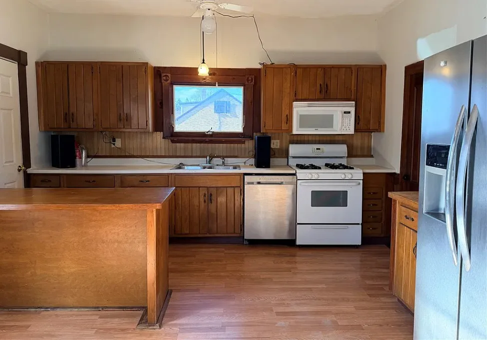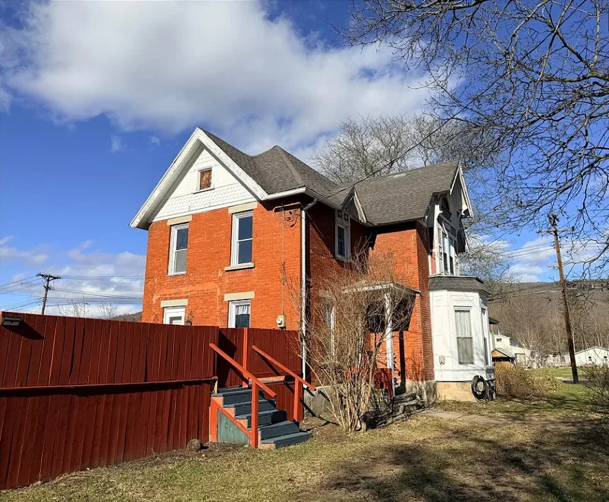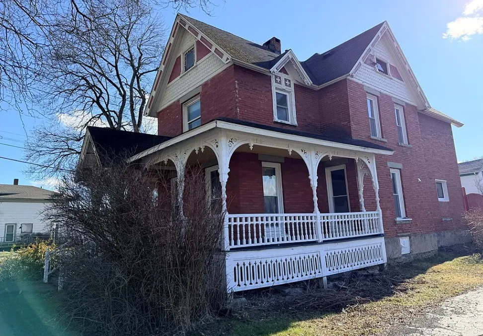 This historic home is full of character and just waiting for your personal touch. Step onto the inviting front porch and enter into a welcoming foyer featuring beautiful original woodwork. From here, you’re led into the spacious front living room—perfect for entertaining guests. The foyer also flows seamlessly into the family room, highlighted by a large bay window that fills the space with natural light. From the family room, you’ll find easy access to the dining area and kitchen. The dining room continues the theme of stunning woodwork, adding warmth and charm throughout.The kitchen offers convenient access to the back deck—ideal for enjoying outdoor meals. There is a small island area, great for stools and extra counter space for prepping. (Dishwasher needs replacing/ Stove may need work or replaced) The main floor also includes a half bath and a laundry room for added convenience. Upstairs, you’ll find a full bathroom and four bedrooms, including a generously sized bedroom at the front of the home, another large bedroom along the side, and two smaller bedrooms located toward the back. Additional features include off-street parking accessible from Taylor Street and a small shed for extra storage.