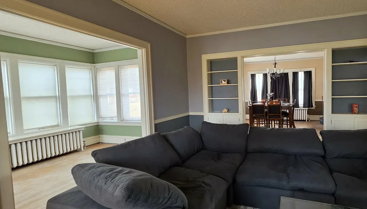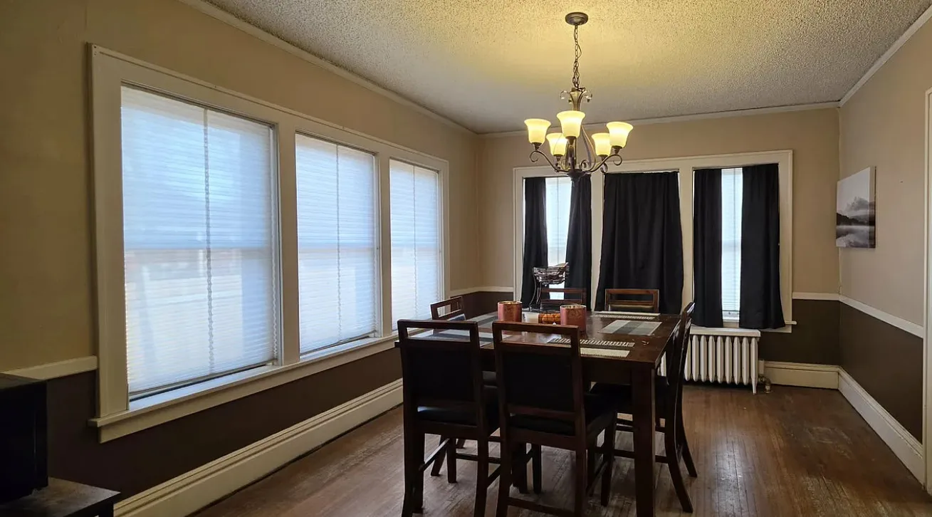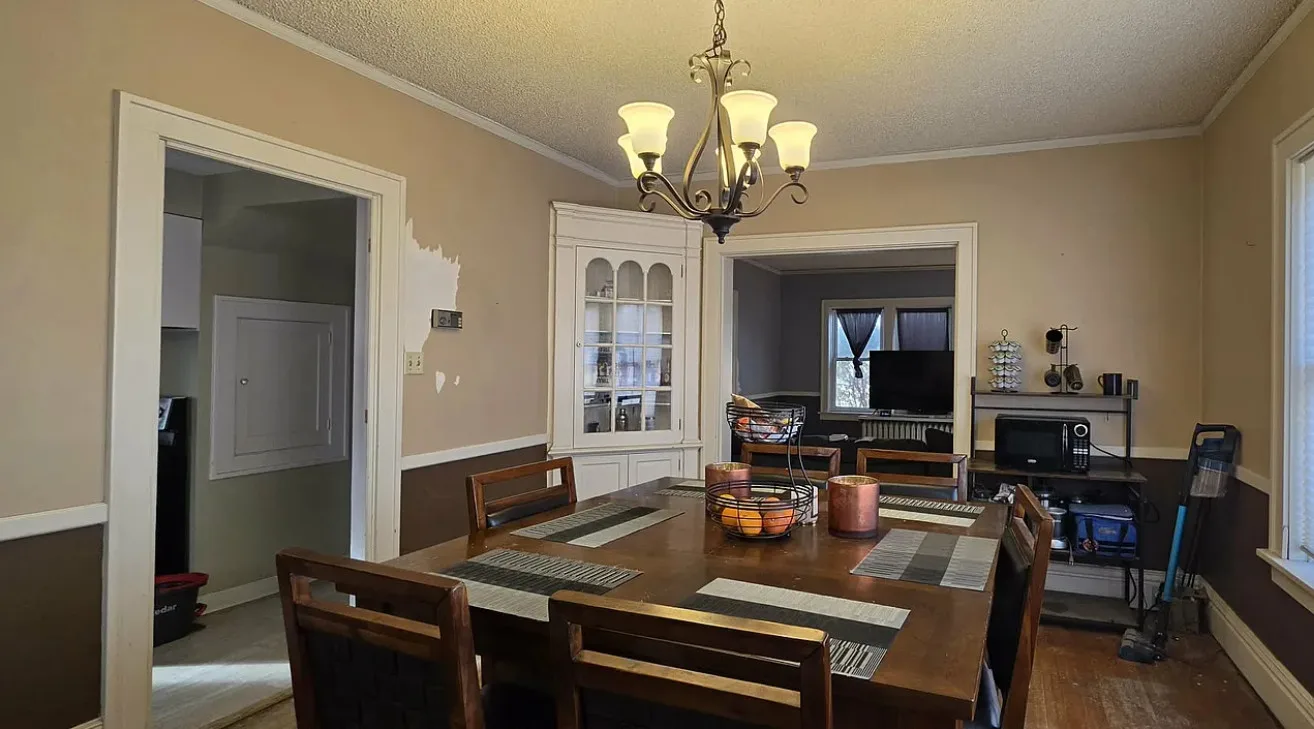 Historic, Victorian four-story brick home on two lots ideally located across from a park, offering timeless character and generous living space. Featuring five bedrooms, two bathrooms, and a two-car garage, this home is rich with original charm and opportunity. Off street parking in front adds convenience, while the oversized, fully fenced backyard provides ample outdoor space. A rare chance to bring this house back to her shine and restore her full potential through thoughtful restoration.