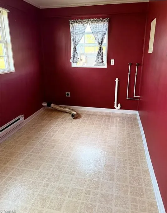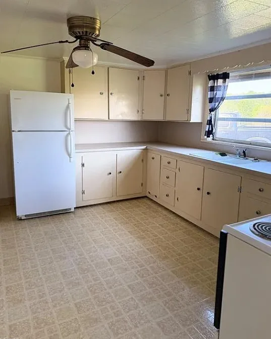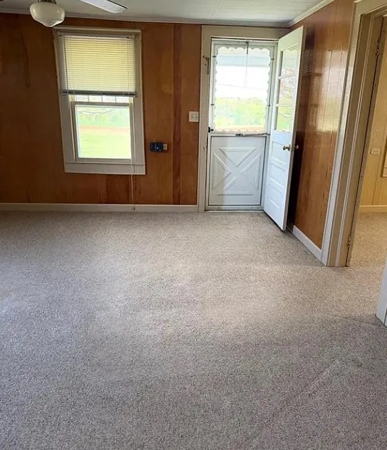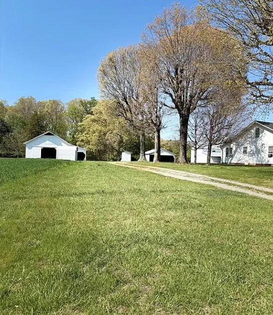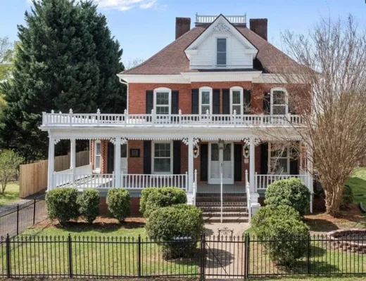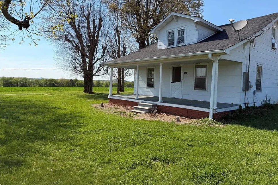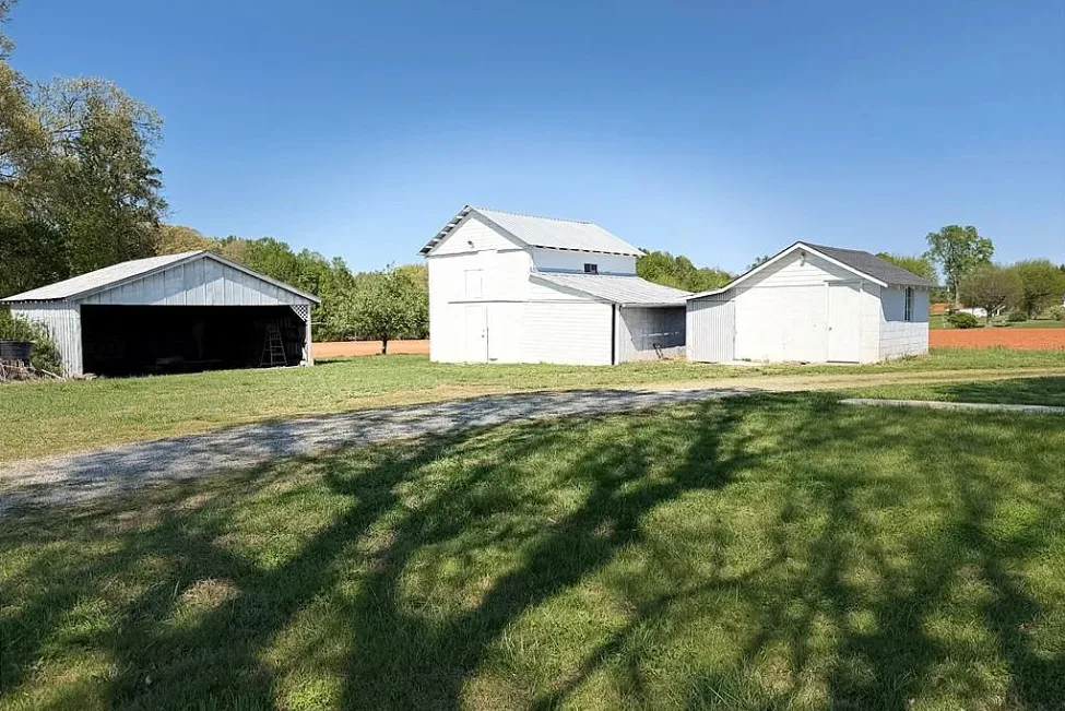 What a pretty setting this house has! It is situated in the foothills of the NC mountains. The interior could use some undoing of past renovations, but it is livable. The house was built in 1940. It is located on 16.65 acres in Yadkinville, North Carolina. The house features a covered front porch and baseboards. I’d be willing to be there are wood floors underneath the carpeting. This is the type house where I would move in and work room by room. Enjoy the property while you work. There are a few outbuildings on the property. Three bedrooms, one bathroom and 1,212 square feet. $349,900