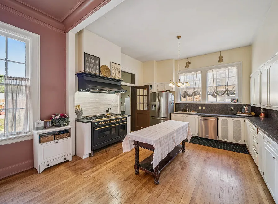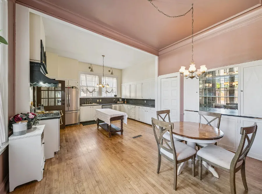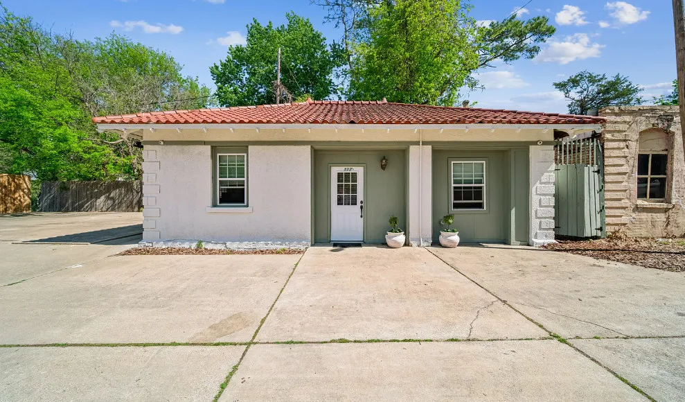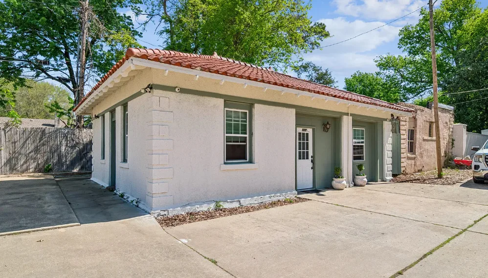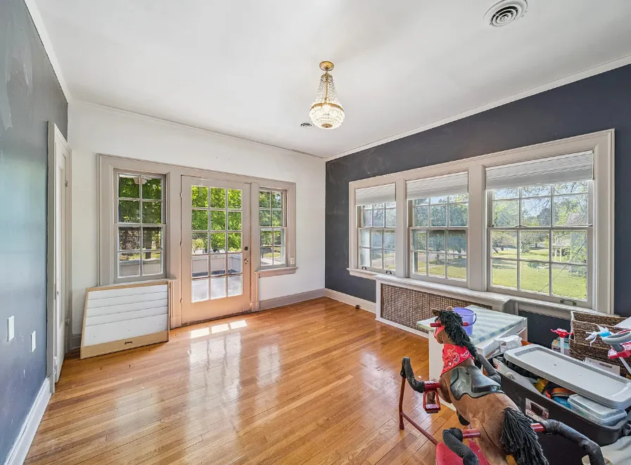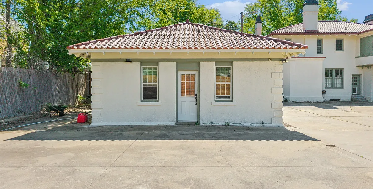 This is a really pretty home! I love the pretty interior details! There is a guest apartment and a large in-ground pool. The property is gated. The house was built in 1920. It is located on .54 acre in Muskogee, Oklahoma. The house features a gated entrance, pretty curb appeal, a covered front porch, wood floors, exposed beams, arched entryways, beautiful fireplace, grand staircase, crown moulding, solid wood doors, crystal chandeliers, ceiling medallions and huge walk in closets. There is a detached guest apartment, a porte cochere and a large in-ground pool. Three bedrooms, two bathrooms and 4,147 square feet. $335,000