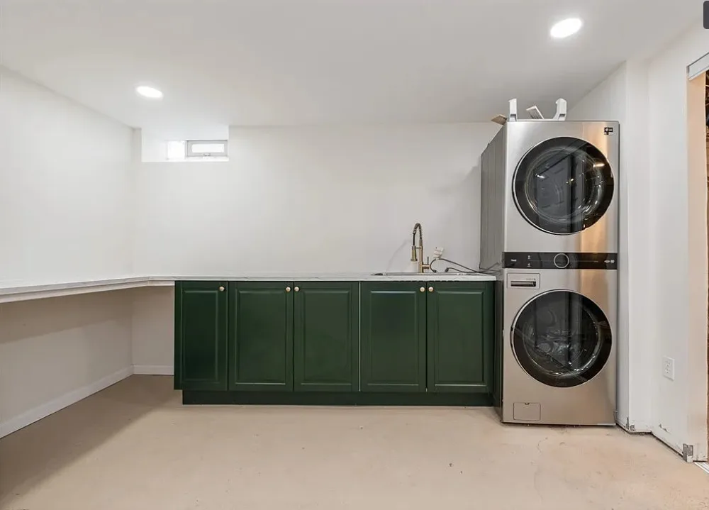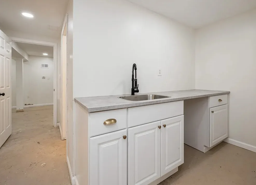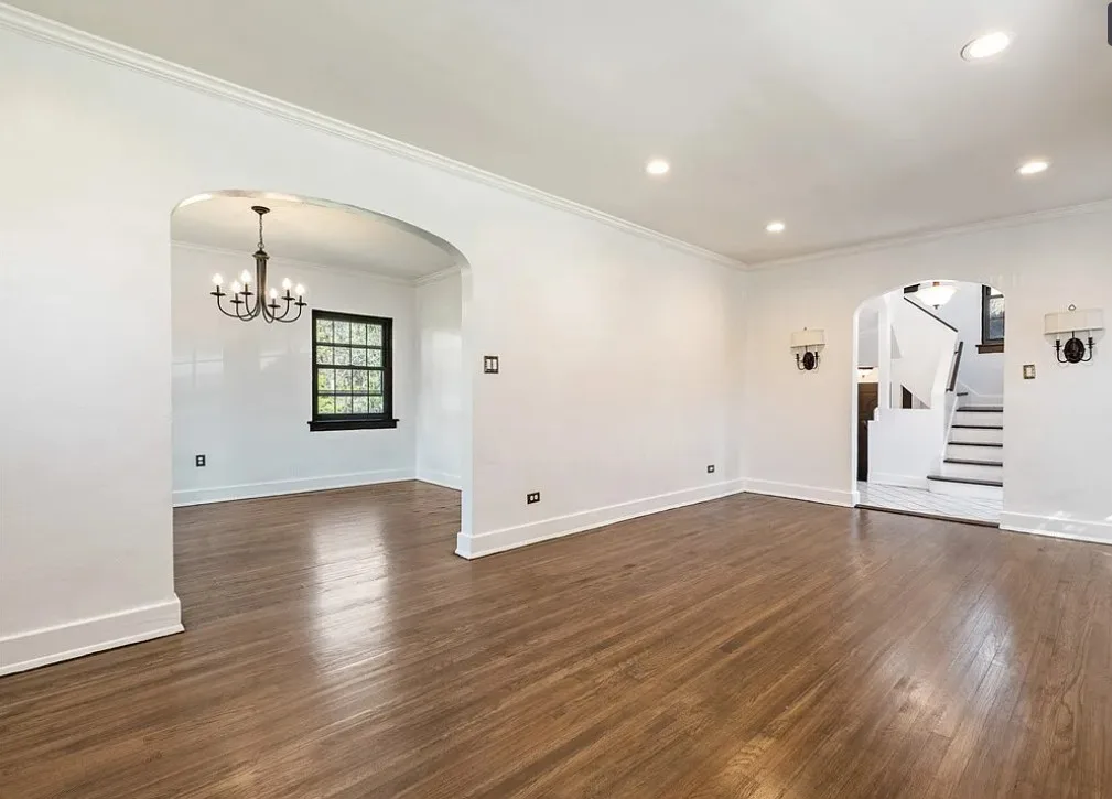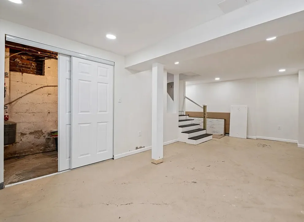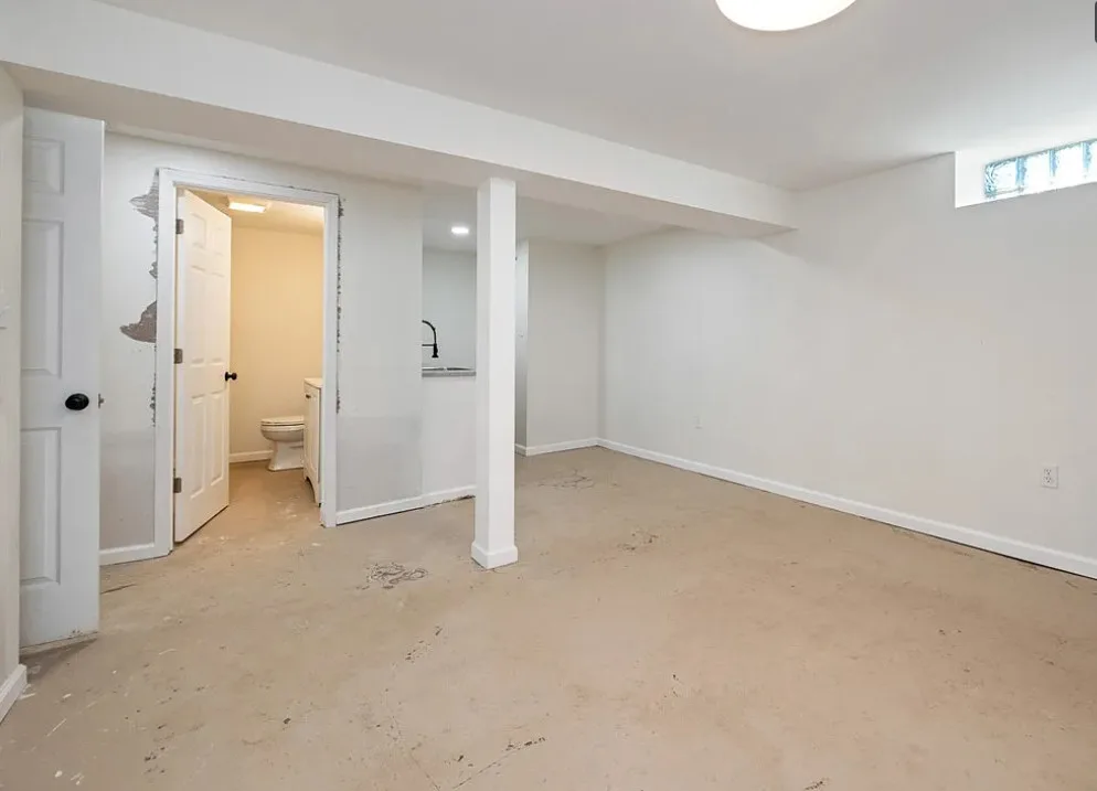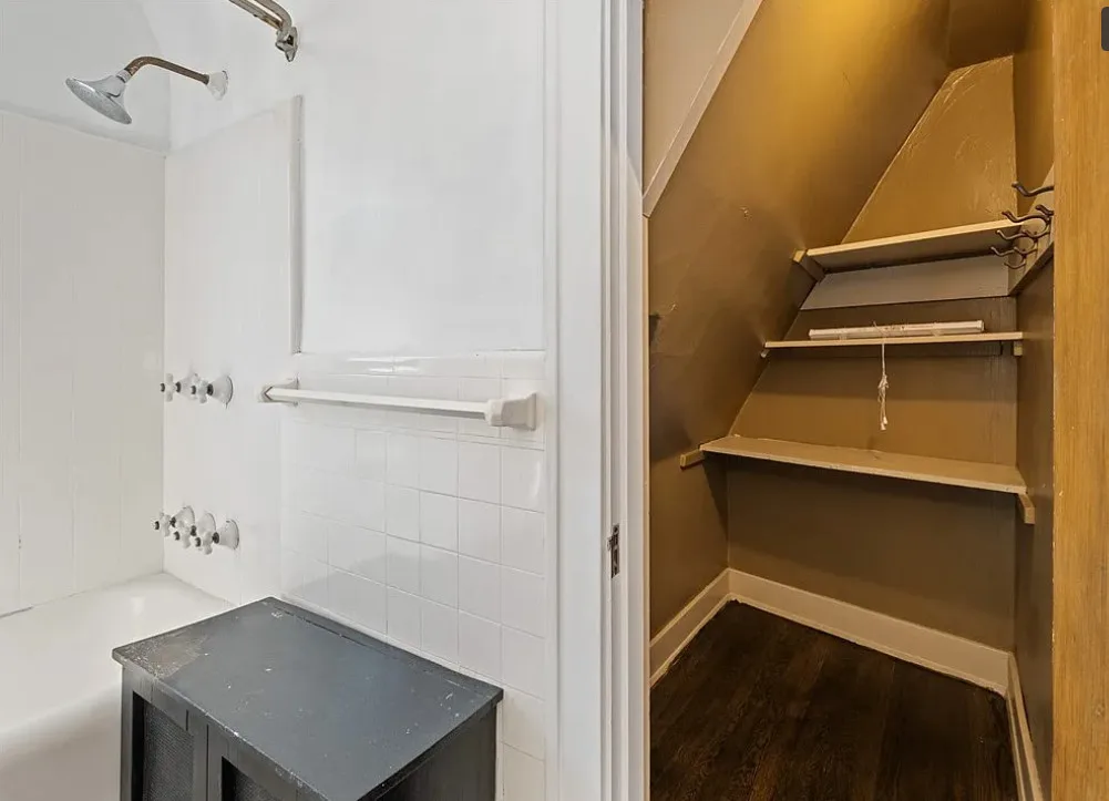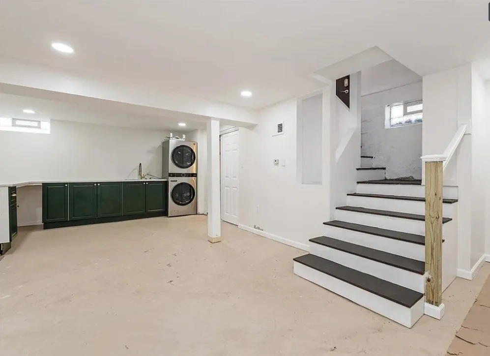 This is a pretty house! I love the exterior! The kitchen and foyer floor, yes or no? The house was built in 1930. It is located in Verona, Pennsylvania. The house features a partially covered front porch, wood floors, crown moulding, baseboards, unique fireplace, leaded glass and a large finished basement. There is a detached garage on the property. The interior could use some color, but that is an easy fix. Three bedrooms, three bathrooms and 1,460 square feet. $225,000