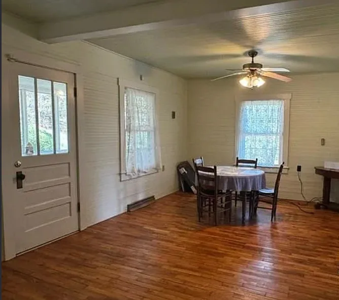 Pretty setting! Nice acreage with this house! There are views of Bull Mountain from th ehouse. The home was built in 1940. It is located on 26.52 acres in Stuart, Virginia. This house is just minutes from Fairystone State Park, which is a nice place. The house features a screened in front porch, vintage kitchen cabinets, wood floors, wood walls and a detached carport. Two bedrooms, one bathroom and 1,034 square feet. $320,000