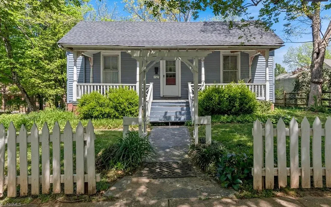 This property was one of the original Moravian Homes in the area around 1900. A charming cottage-style home features a spacious front porch, situated on a corner lot with a fenced rear yard. The interior comprises a living room, dining room, kitchen equipped with a pantry, two bedrooms, and a full bathroom. Additionally, a generous deck provides a lovely view of the backyard. Parking is available on the street or in a private driveway. This property has a lot of potential and is conveniently located near downtown, the NC School of the Arts, Old Salem, as well as providing easy access to major highways, shopping, and dining options.