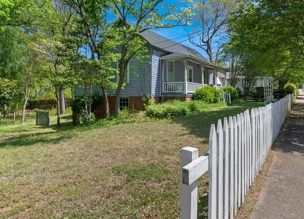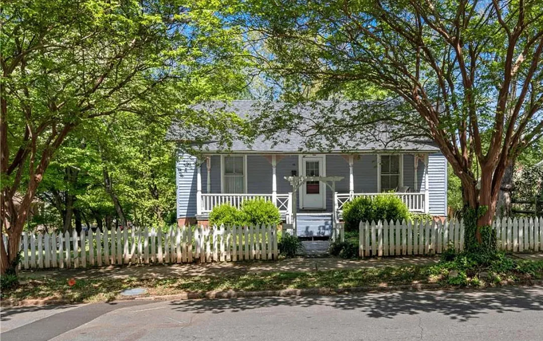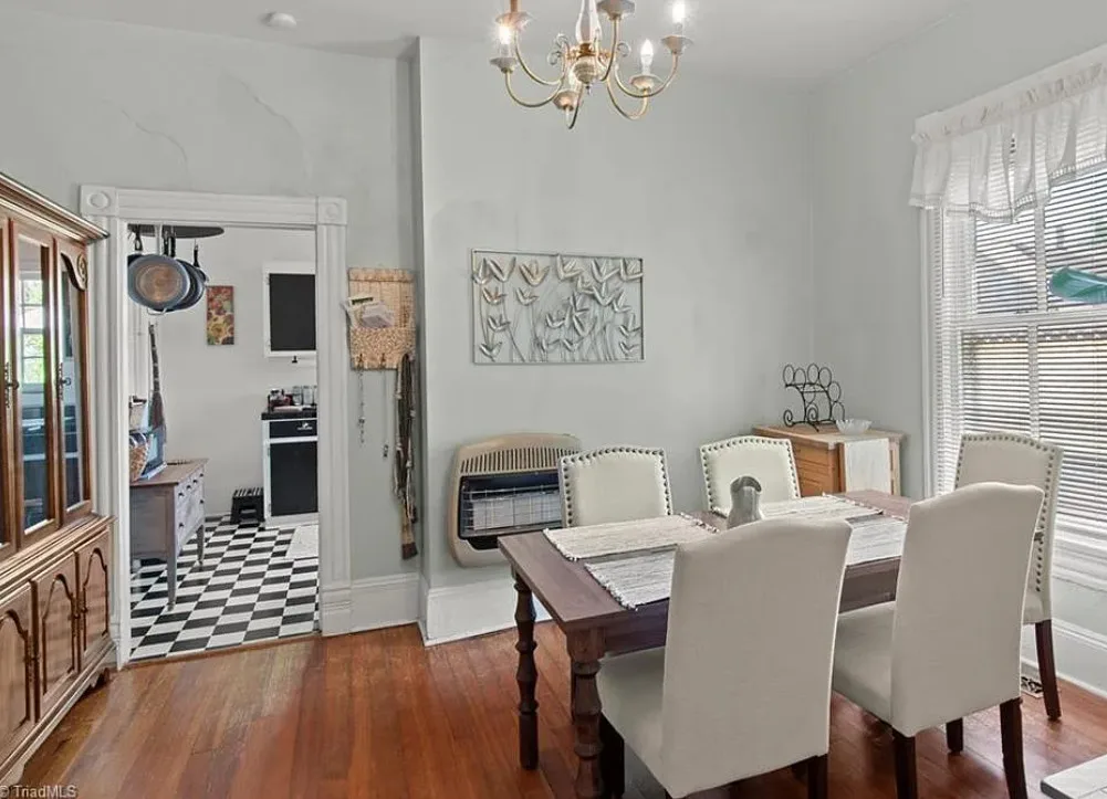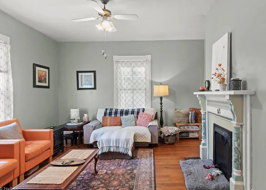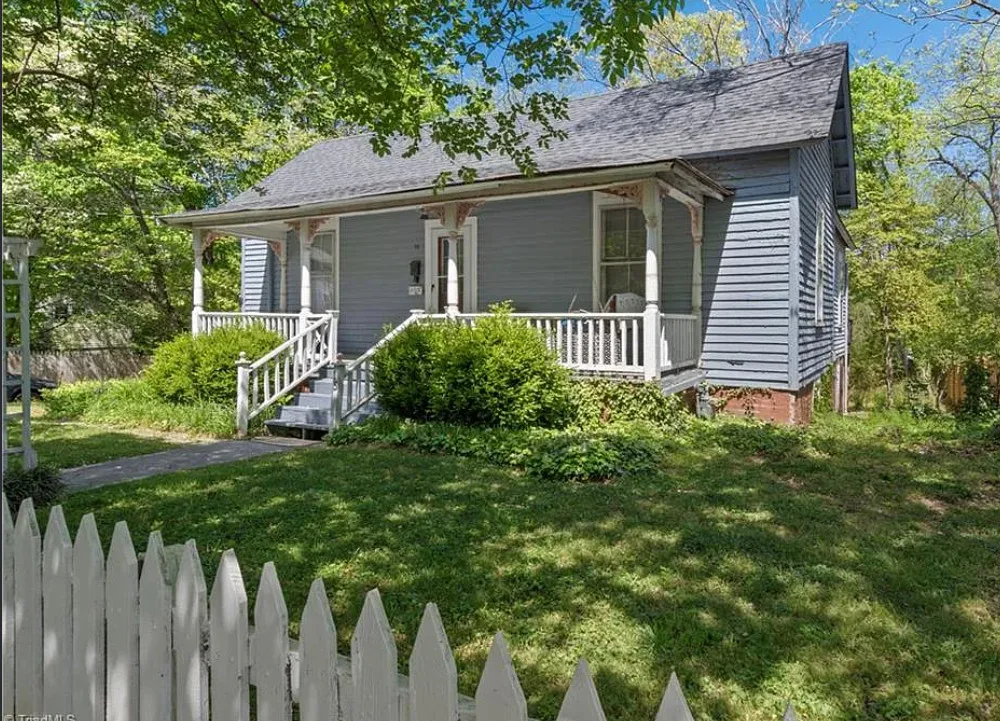 This house has great curb appeal! I think I would add some flowers though. The house has a nice interior. The home was built in 1900. It is located on .26 acre in Winston Salem, North Carolina. The house features a white picket fence, a covered front porch, original wood floors and original mantels. The kitchen could use some help. Two bedrooms, one bathroom and 1,126 square feet. $195,000