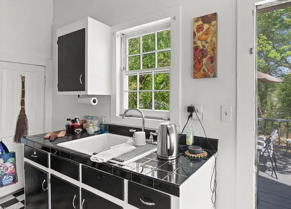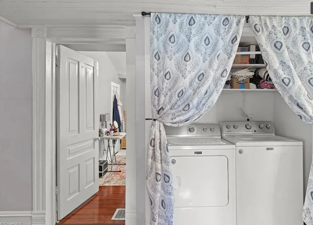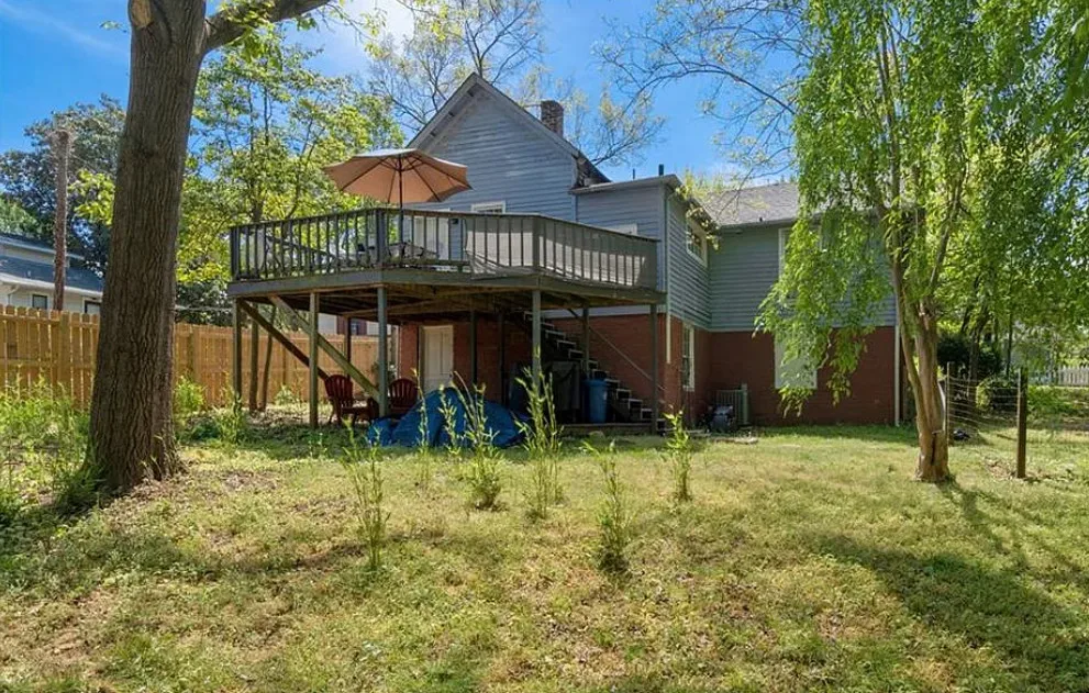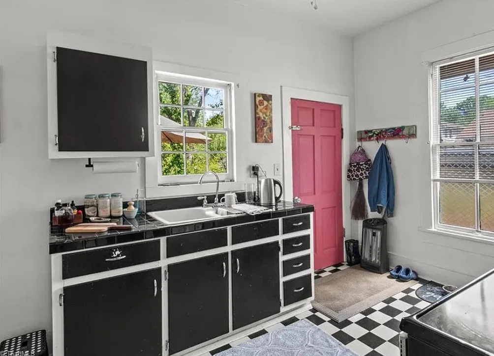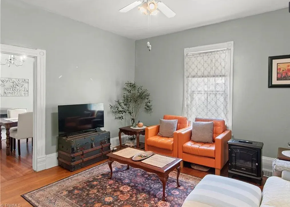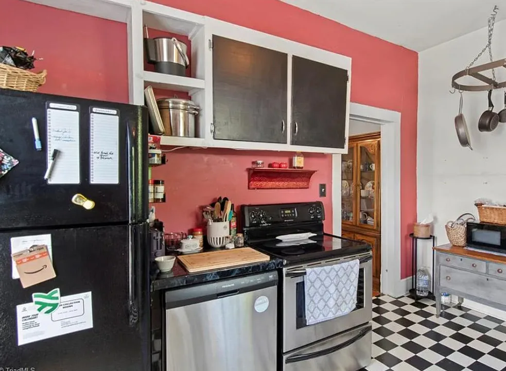 This house has great curb appeal! I think I would add some flowers though. The house has a nice interior. The home was built in 1900. It is located on .26 acre in Winston Salem, North Carolina. The house features a white picket fence, a covered front porch, original wood floors and original mantels. The kitchen could use some help. Two bedrooms, one bathroom and 1,126 square feet. $195,000