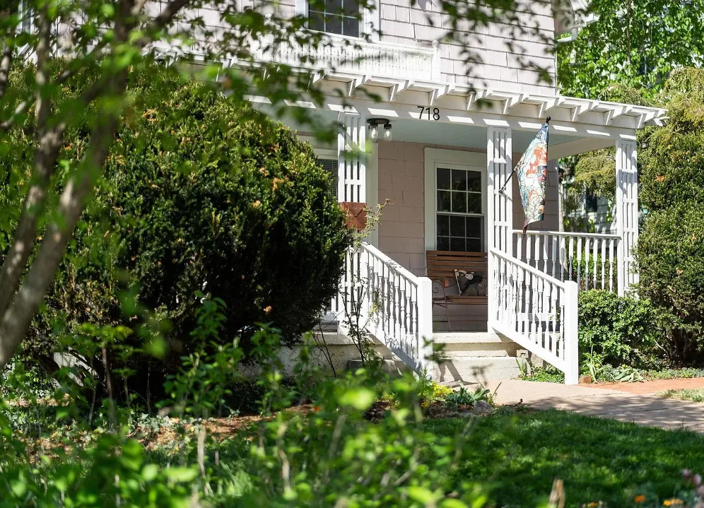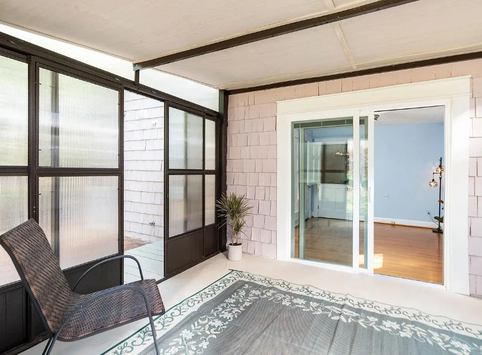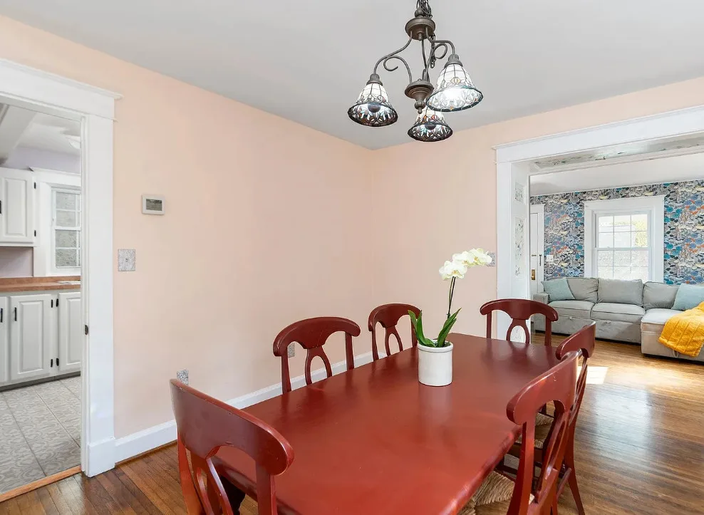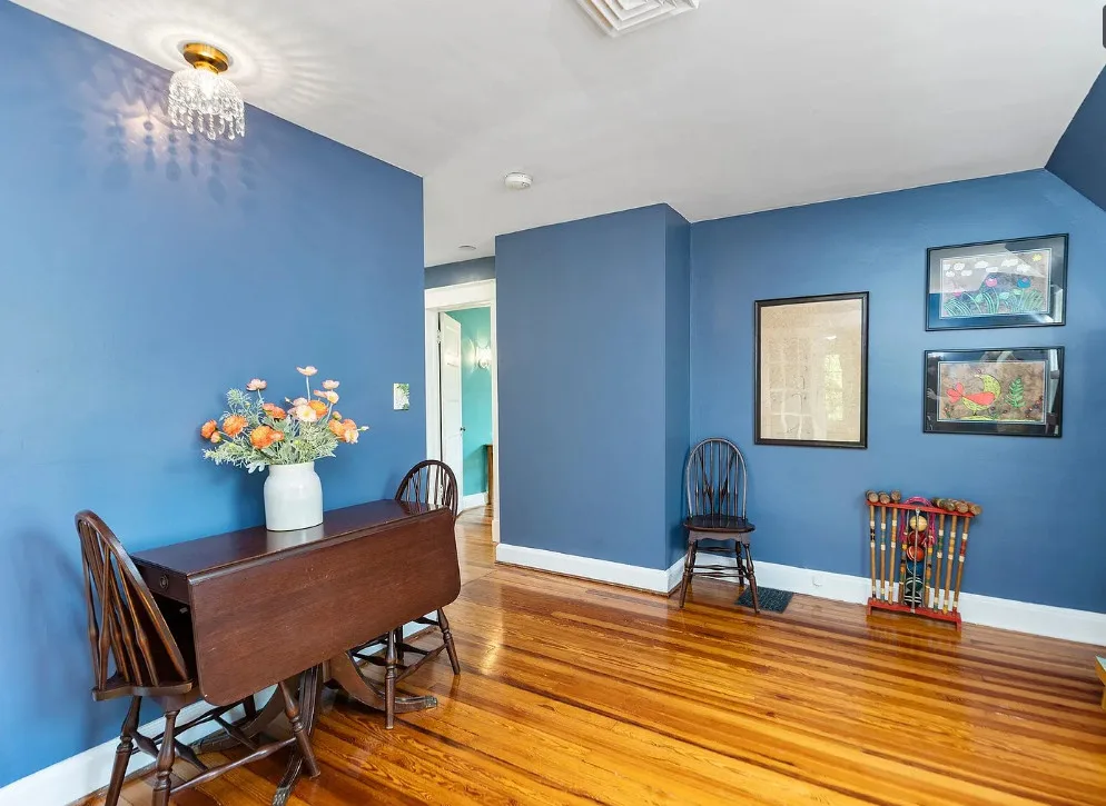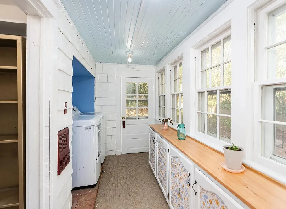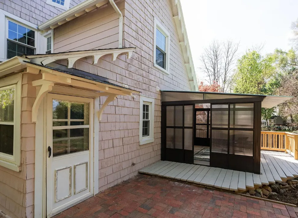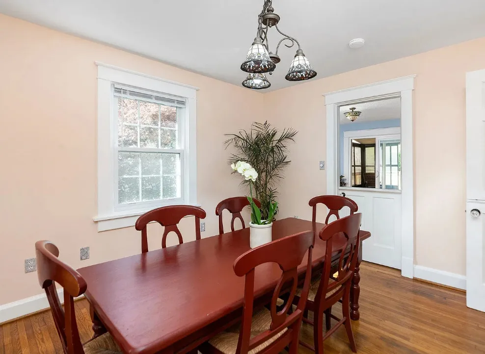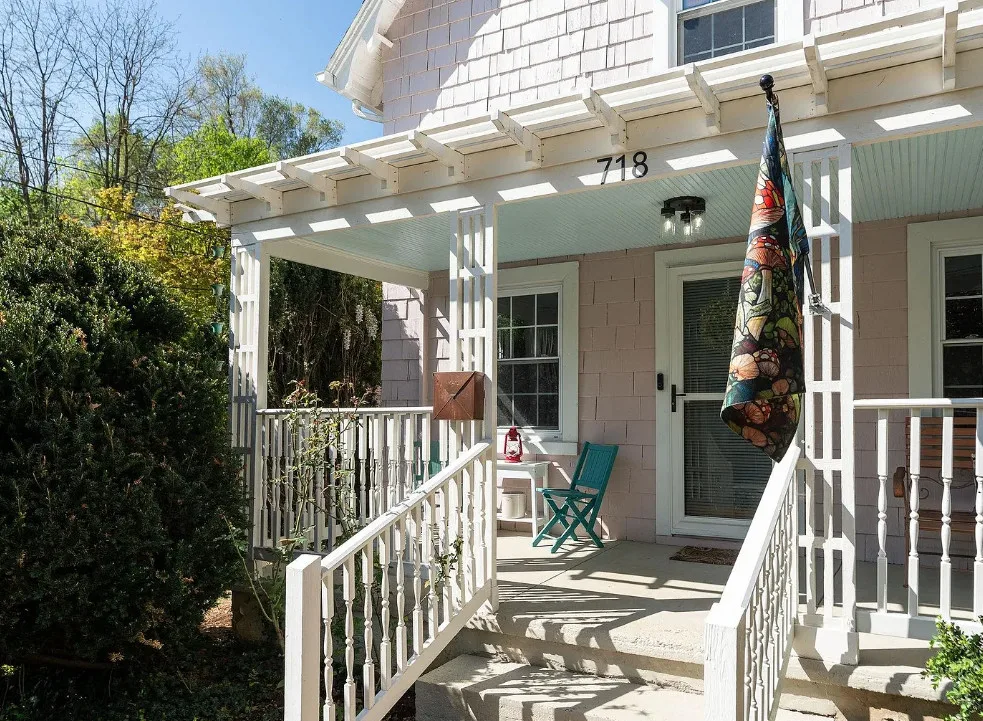This looks like a fairytale house and it has an interesting history! It was built by TJ Collins of Collins Bros. It was originally built as a model home for the neighborhood, but this ended up being the one and only! So it is truly a one of a kind. While the house looks gothic and a bit earlier, it was built in 1927. Back then some builders were creating homes and neighborhoods that looked older than they were. The house is located in Staunton, Virginia. The house features a covered front porch, wood floors, baseboards, vintage stove, a lot of natural light, pressed tin ceiling and an enclosed back porch. There is a great shed in the backyard that matches the house. This home could use some of my pink roses climbing on that porch railing. Three bedrooms, two bathrooms and 1,852 square feet. $375,000