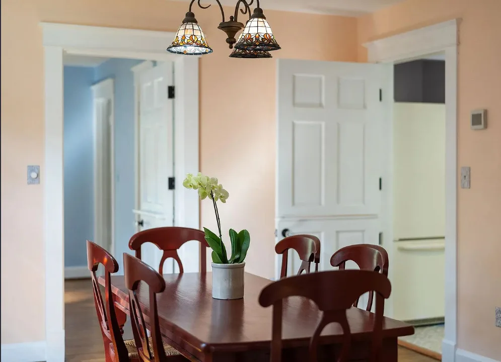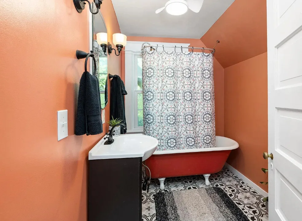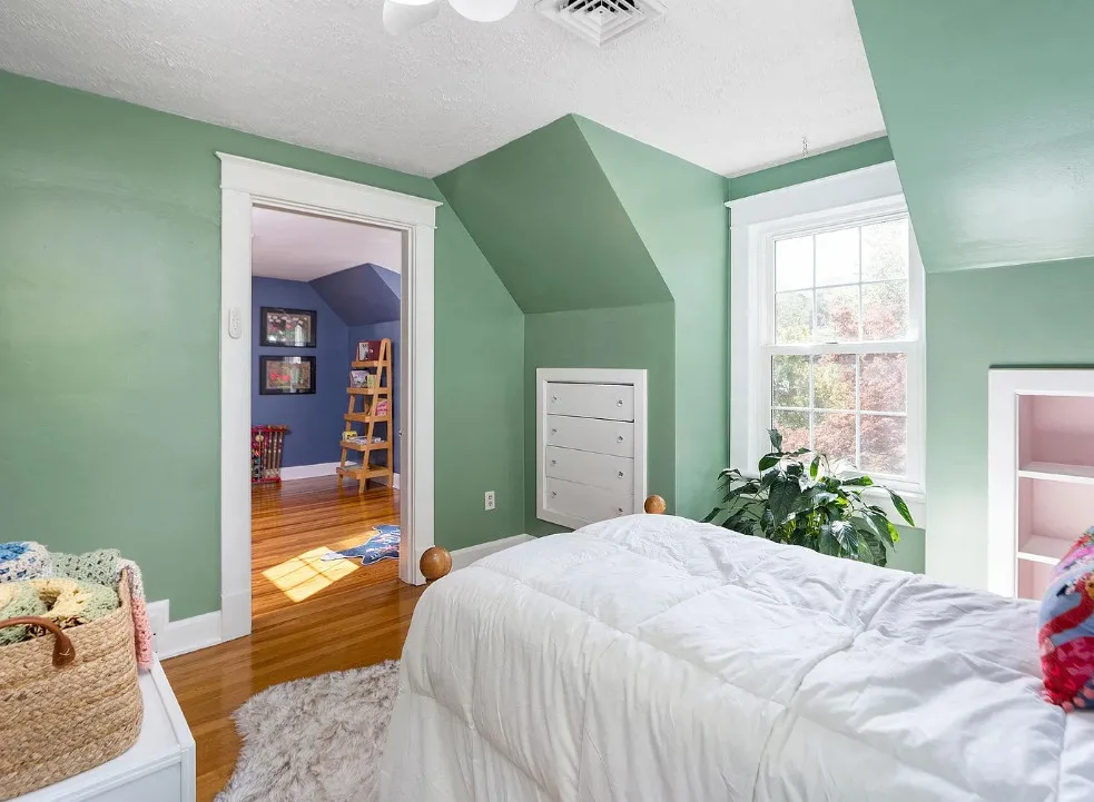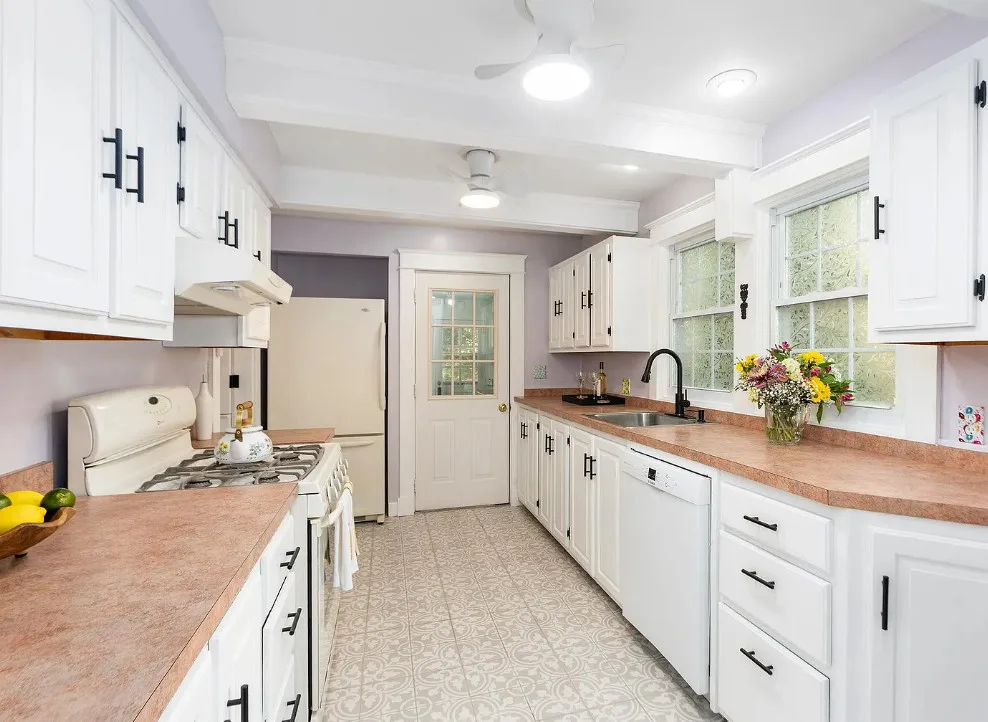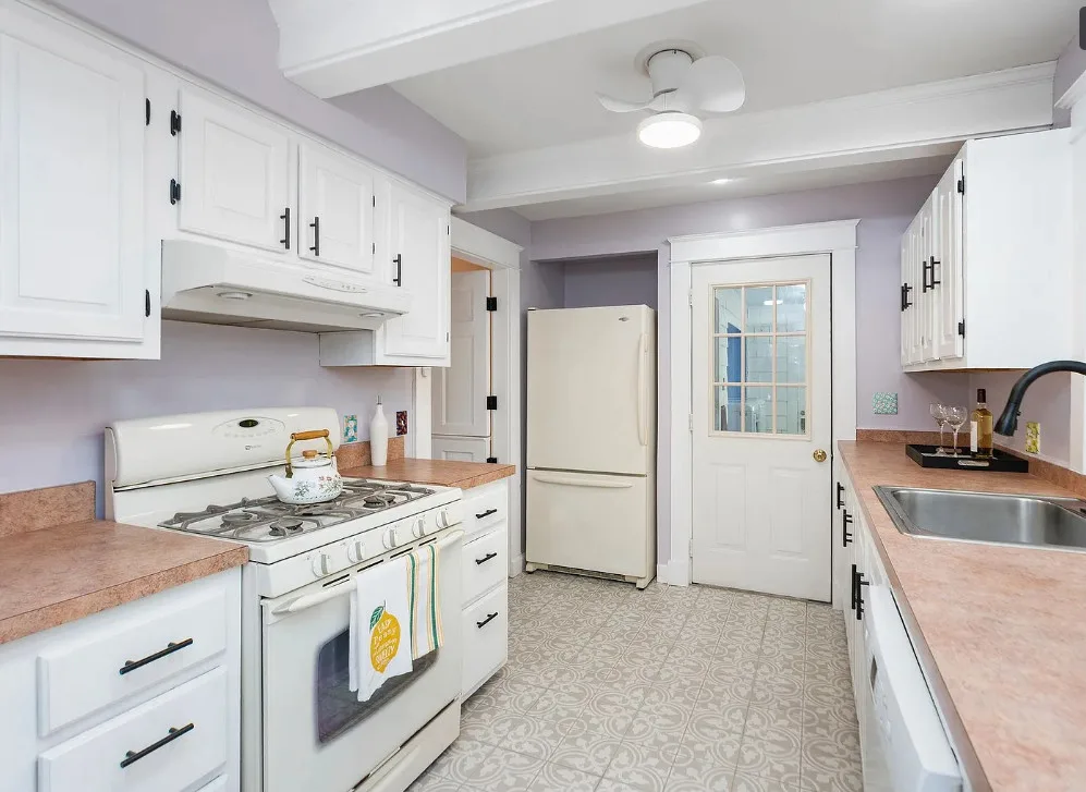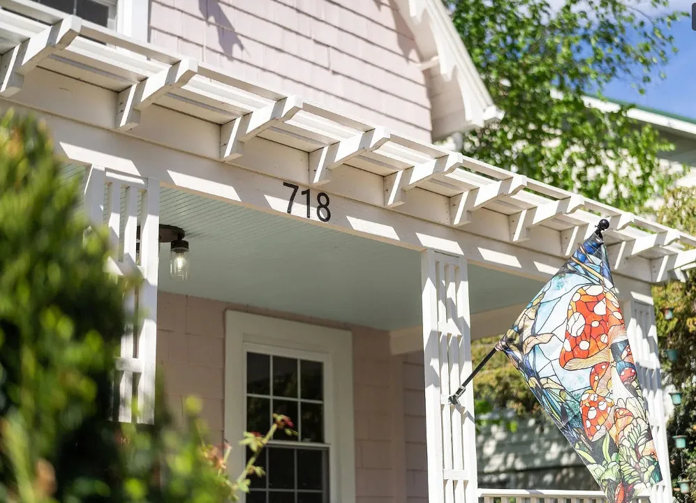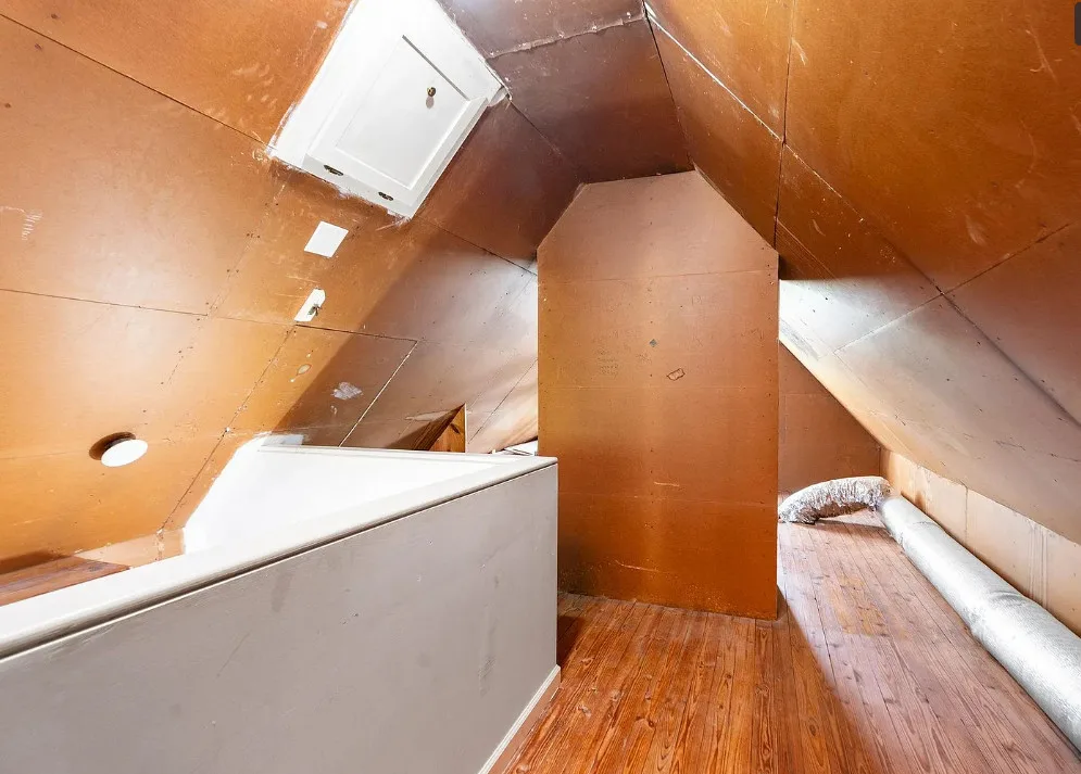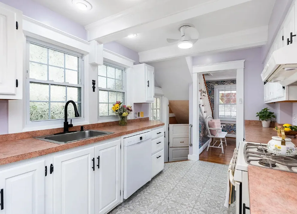 This looks like a fairytale house and it has an interesting history! It was built by TJ Collins of Collins Bros. It was originally built as a model home for the neighborhood, but this ended up being the one and only! So it is truly a one of a kind. While the house looks gothic and a bit earlier, it was built in 1927. Back then some builders were creating homes and neighborhoods that looked older than they were. The house is located in Staunton, Virginia. The house features a covered front porch, wood floors, baseboards, vintage stove, a lot of natural light, pressed tin ceiling and an enclosed back porch. There is a great shed in the backyard that matches the house. This home could use some of my pink roses climbing on that porch railing. Three bedrooms, two bathrooms and 1,852 square feet. $375,000