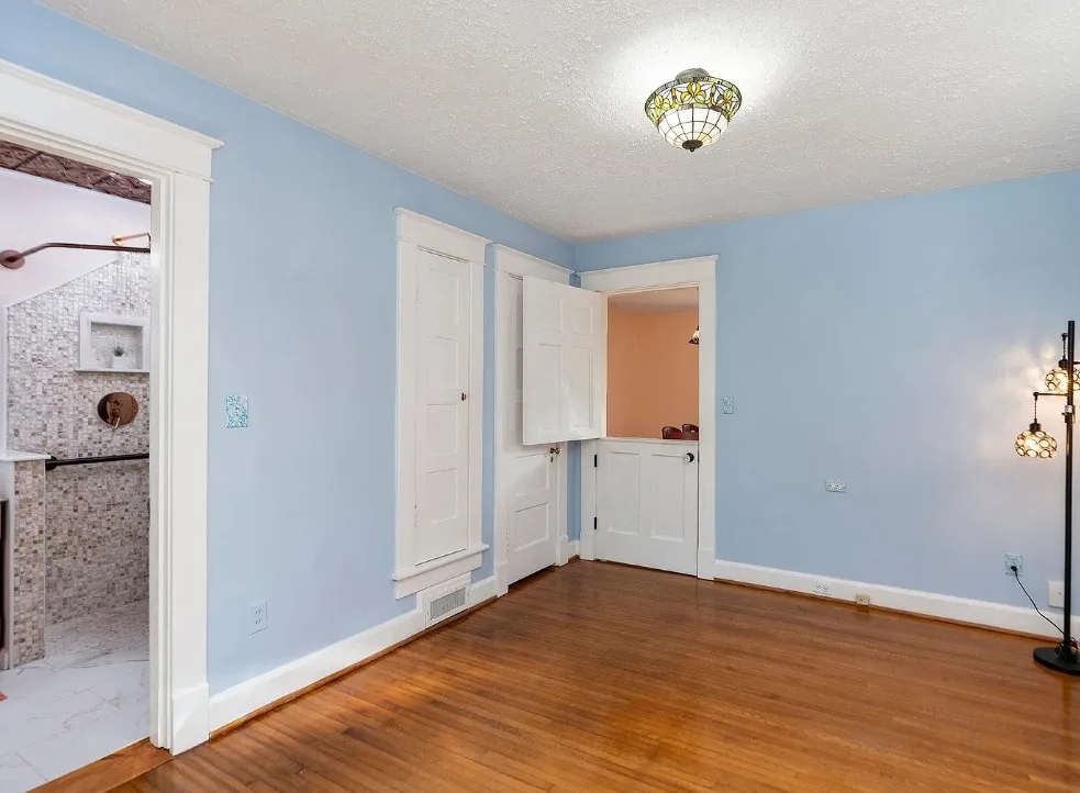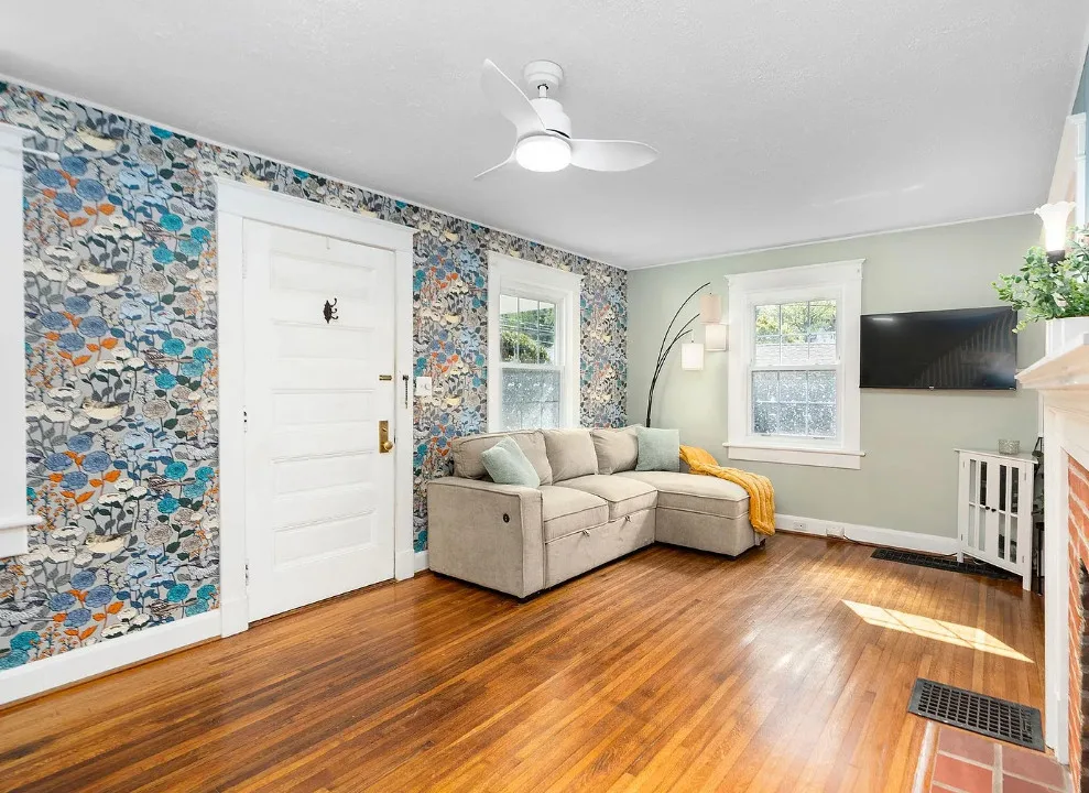 One Of A Kind Located In The Heart Of Staunton! Own a beautiful piece of Staunton’s history as this well maintained home was built by TJ Collins sons the “Collins Bros”. It was a prototype for the neighborhood but this ended up being the one & only, so it truly is “One Of A Kind”. It’s located on a picturesque street right next to Gypsy Hill Park, Lake Tams & is walkable to downtown Staunton. The inviting front porch leads you into a quant living room with a beautiful brick fireplace centering the space, skinny slat hardwood floors & lots of natural light. The doorway into the dining room from the living room was lovingly painted by a local artist (the owner), which ties the spaces together perfectly. It offers true one level living with the primary bedroom, completely renovated primary bathroom & laundry being located on the main level. Moving upstairs you will find 2 bedrooms, a bonus room with a closet, a renovated bathroom & walk up attic access for storage. The home has undergone a very tasteful renovation. Too many updates to list (request list). Outside you will find beautiful flower gardens that offer something lovely all year, brick sidewalks & a brick patio. I know you will love this dreamy cottage as much as Lynn did!