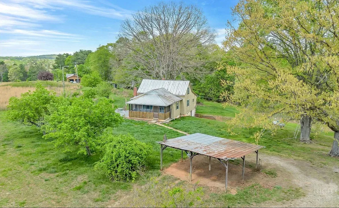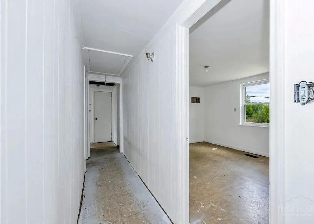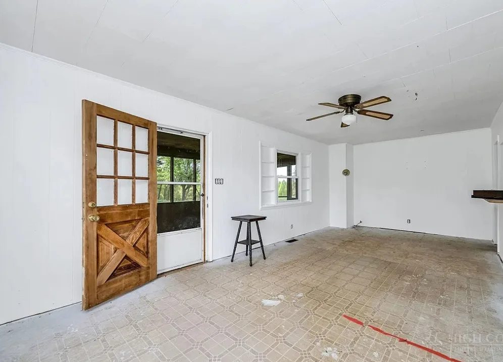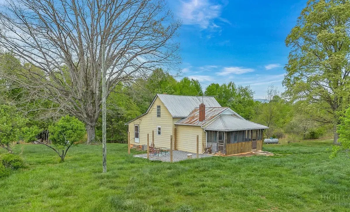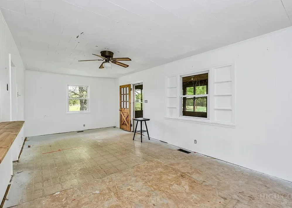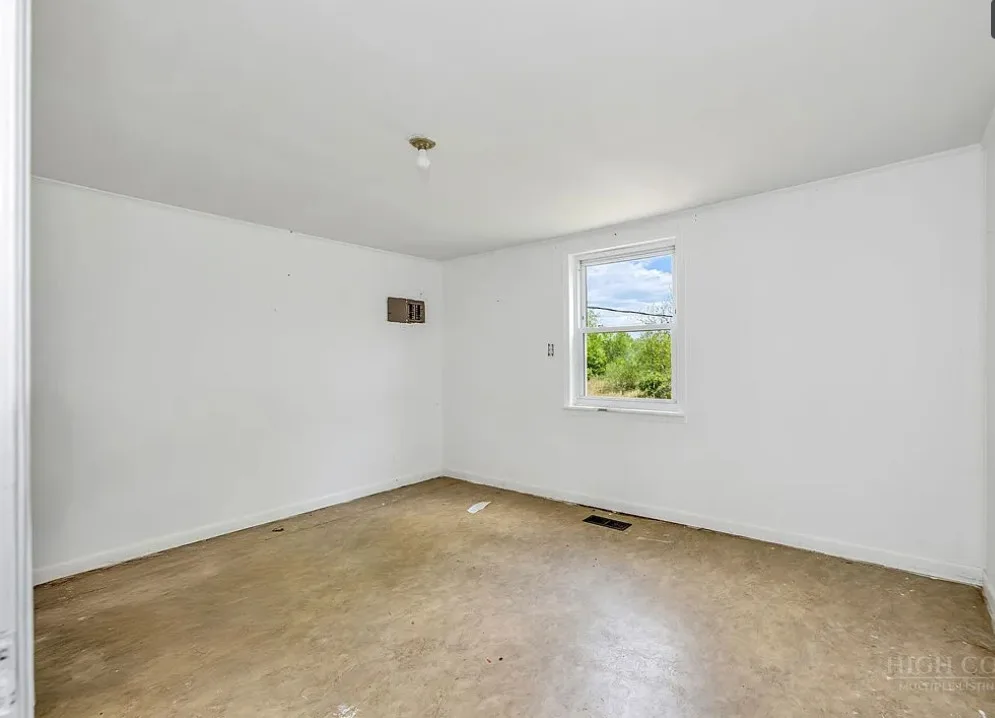 This house has a pretty setting with some nice acreage! Repeat after me, I will never buy a paint sprayer. Or at least put some drop cloths down. The house was built in 1940. It is located on 8.6 acres in Roaring River, North Carolina. The house is kind of like a blank slate inside. There is a screened in porch and a carport. It’s really like a blank slate. Two bedrooms, one bathroom and 815 square feet. $180,000