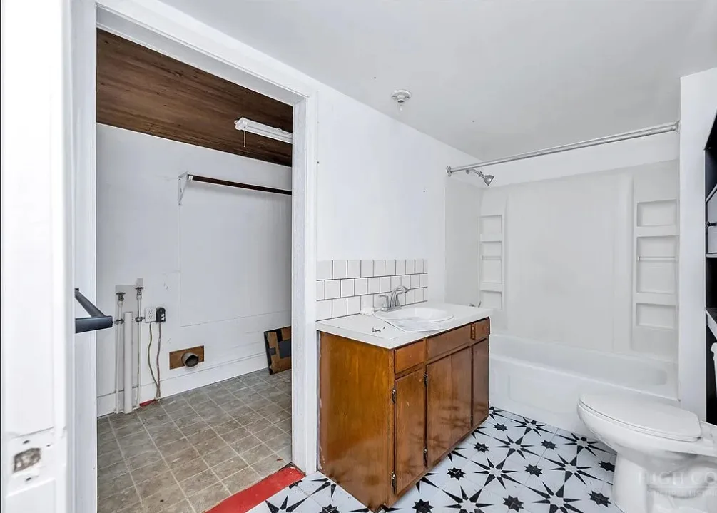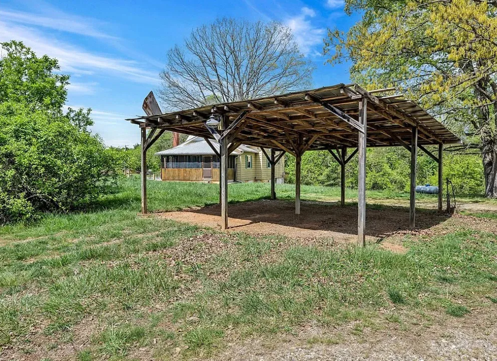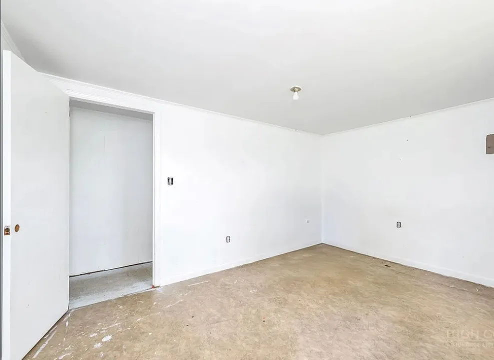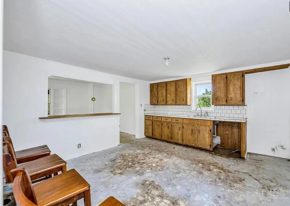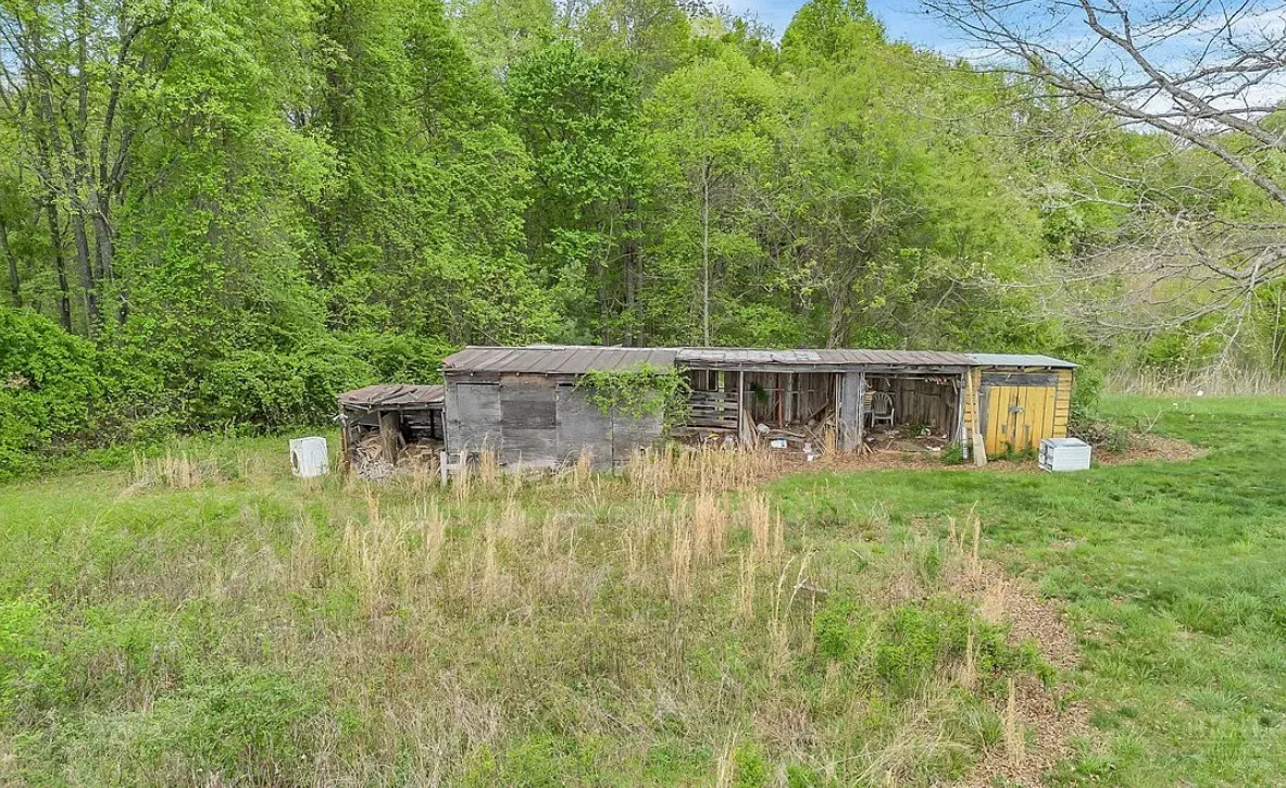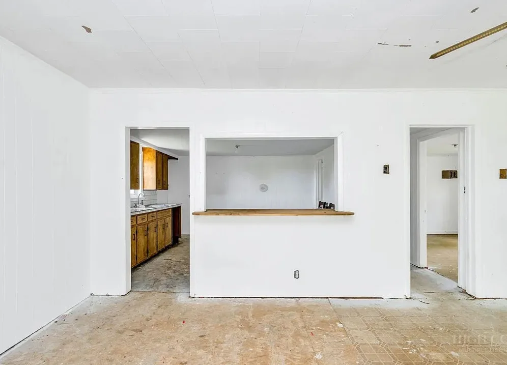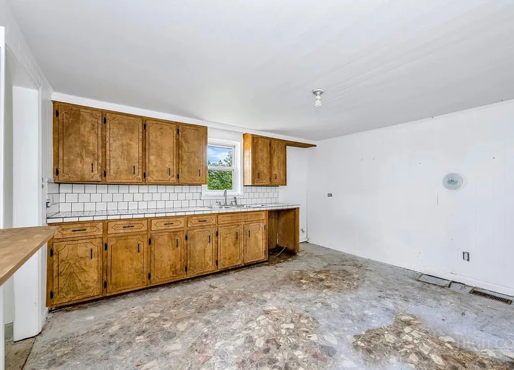 This house has a pretty setting with some nice acreage! Repeat after me, I will never buy a paint sprayer. Or at least put some drop cloths down. The house was built in 1940. It is located on 8.6 acres in Roaring River, North Carolina. The house is kind of like a blank slate inside. There is a screened in porch and a carport. It’s really like a blank slate. Two bedrooms, one bathroom and 815 square feet. $180,000