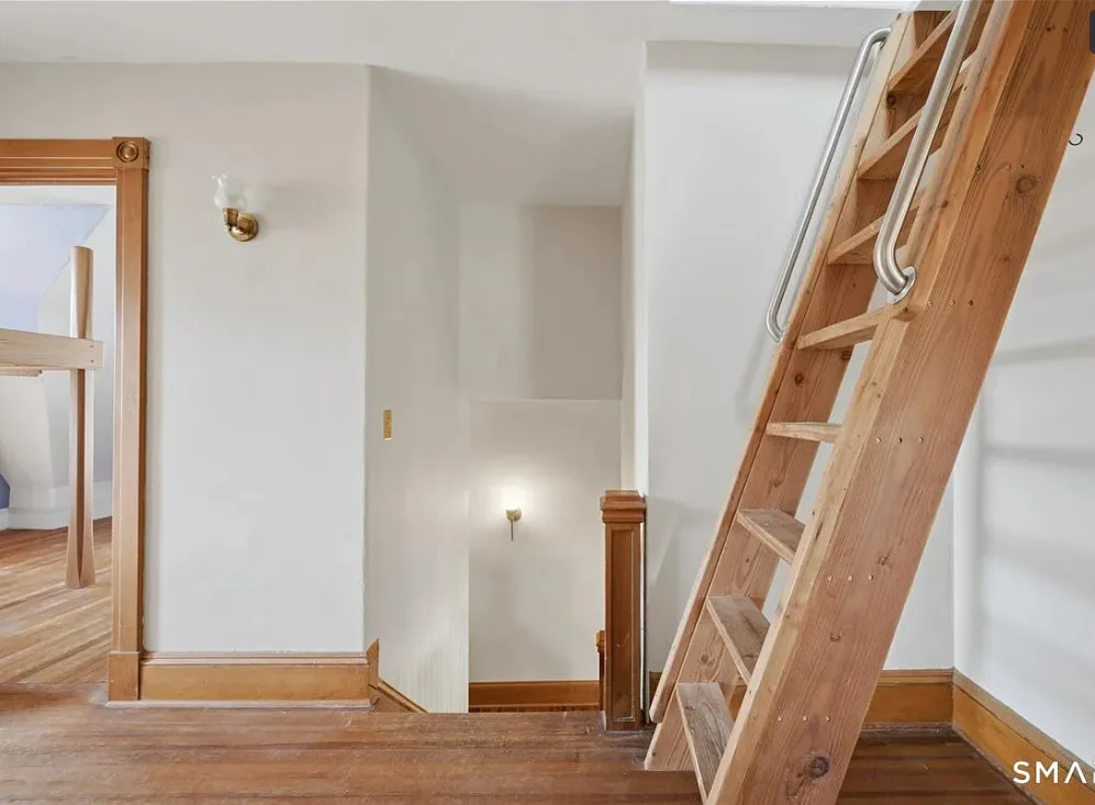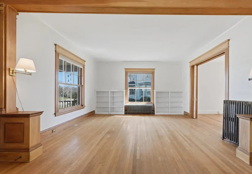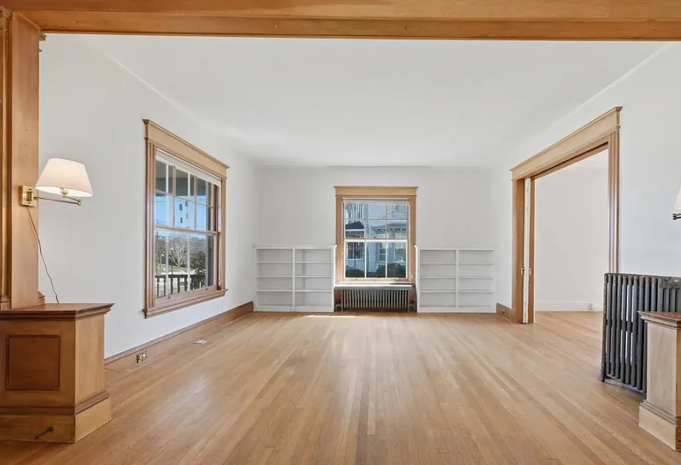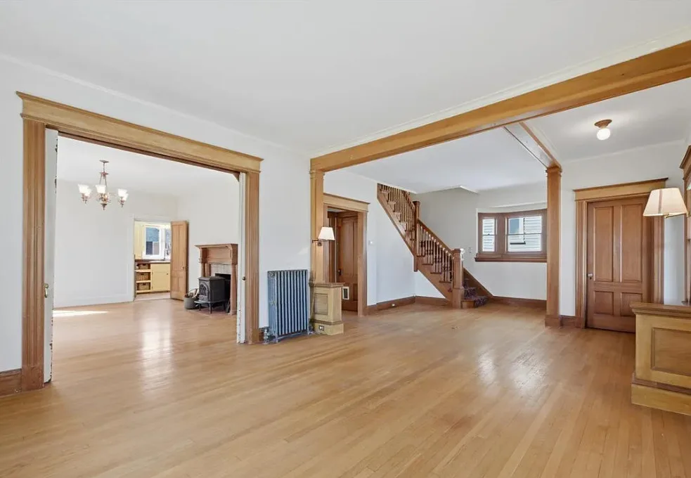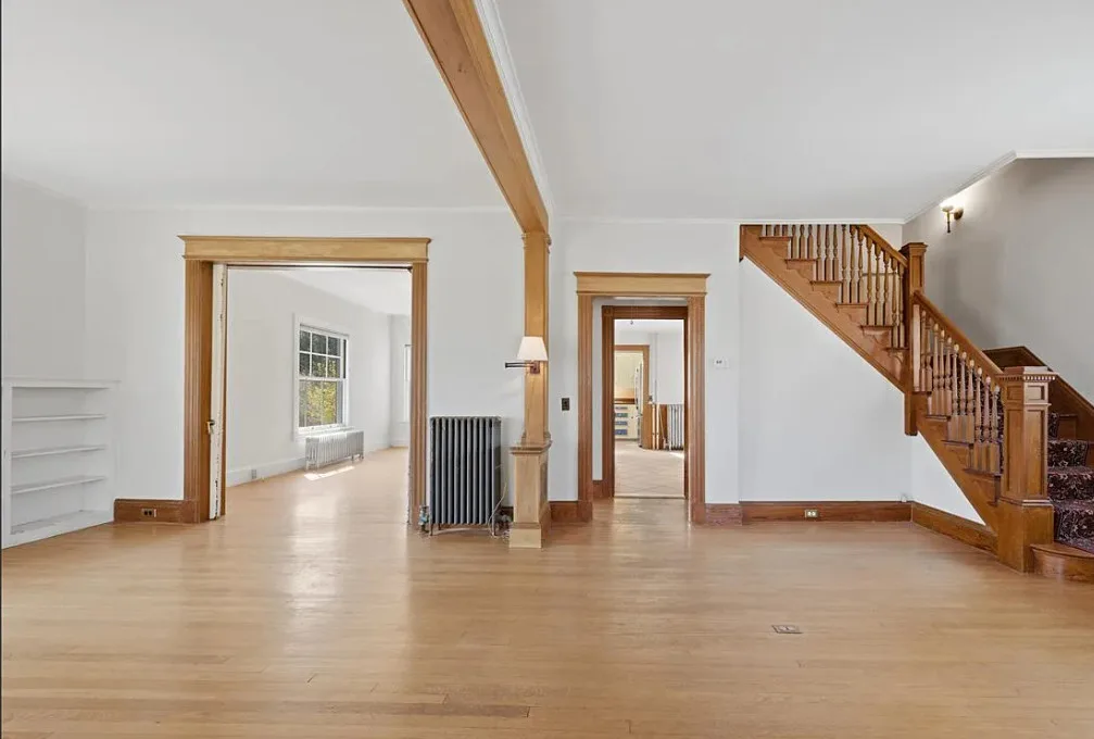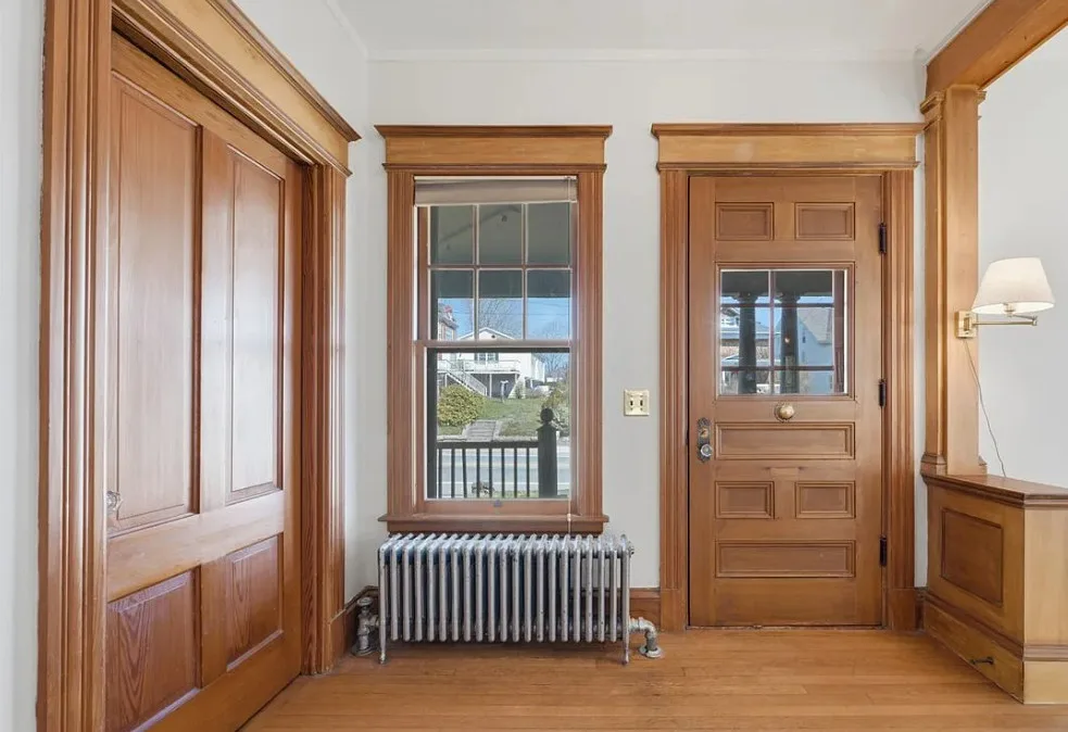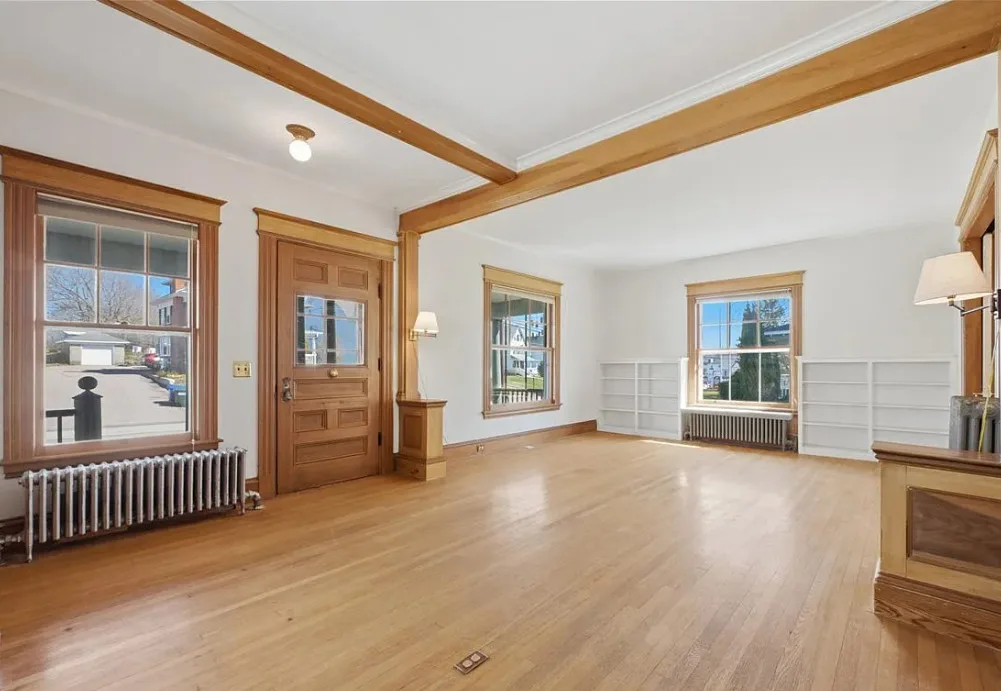 I love this exterior style! It’s really nice. The interior is nice also! The house was built in 1888. It is located in Stonington, Connecticut. The house features a covered front porch, pretty staircase, original wood floors, baseboards, pocket doors and wainscoting. There is a garage and the home is near Rhode Island beaches. Four bedrooms, two bathrooms and 2,101 square feet. $459,000