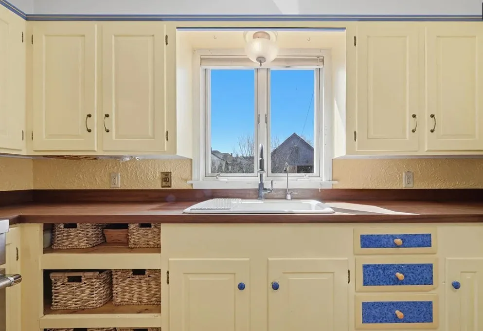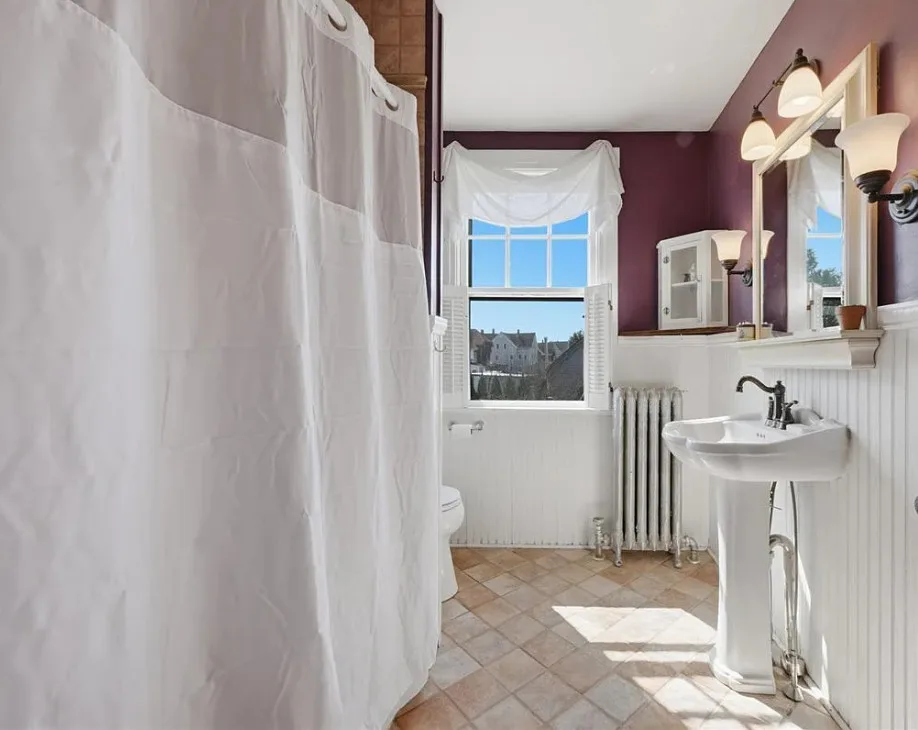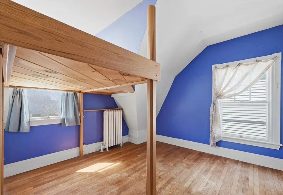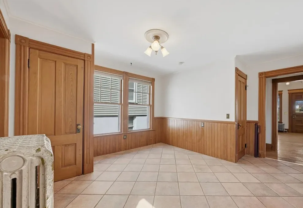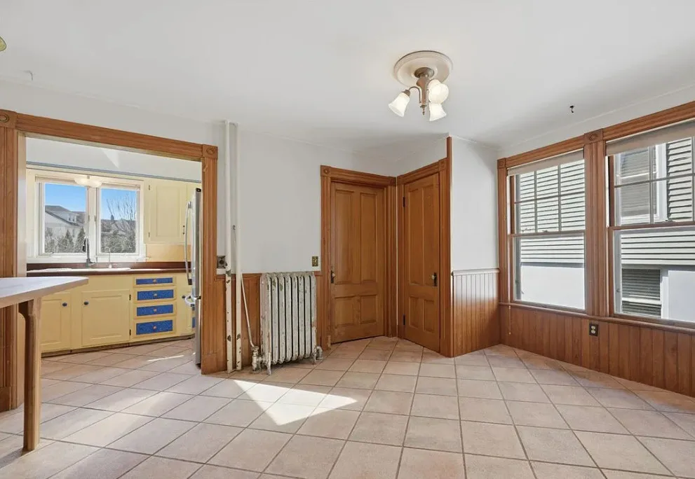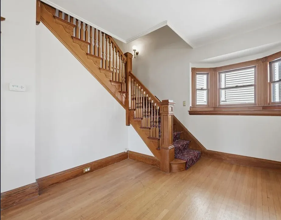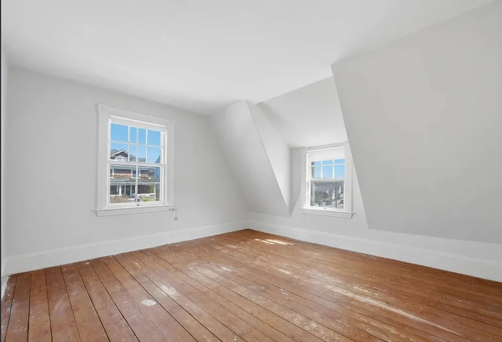 I love this exterior style! It’s really nice. The interior is nice also! The house was built in 1888. It is located in Stonington, Connecticut. The house features a covered front porch, pretty staircase, original wood floors, baseboards, pocket doors and wainscoting. There is a garage and the home is near Rhode Island beaches. Four bedrooms, two bathrooms and 2,101 square feet. $459,000