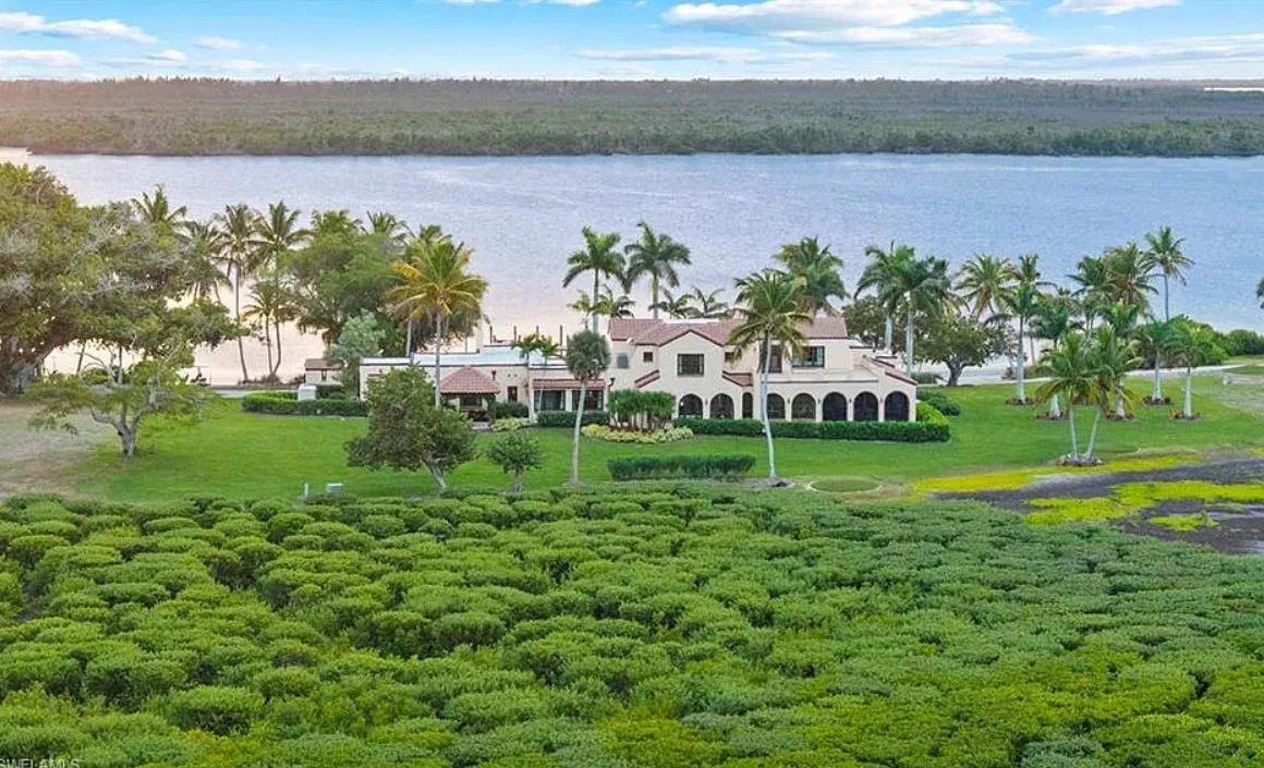 Island time! And boy, this sure is some island! A neat tidbit of history is that Thomas Edison planted the banyan trees on the property! This is known as Burgess Island, and it is also called Little Bokeelia Island. The house was built in 1928. It is located on 104 acres in Bokellia, Florida. It was originally built by Charles Frederick Burgess, founder of the Burgess Battery Company. The property consists of a main house, guest cottages, manager’s house, nine hole golf course, pool and a tennis court. Six bedrooms, thirteen bathrooms and 11,371 square feet. $89,000,000