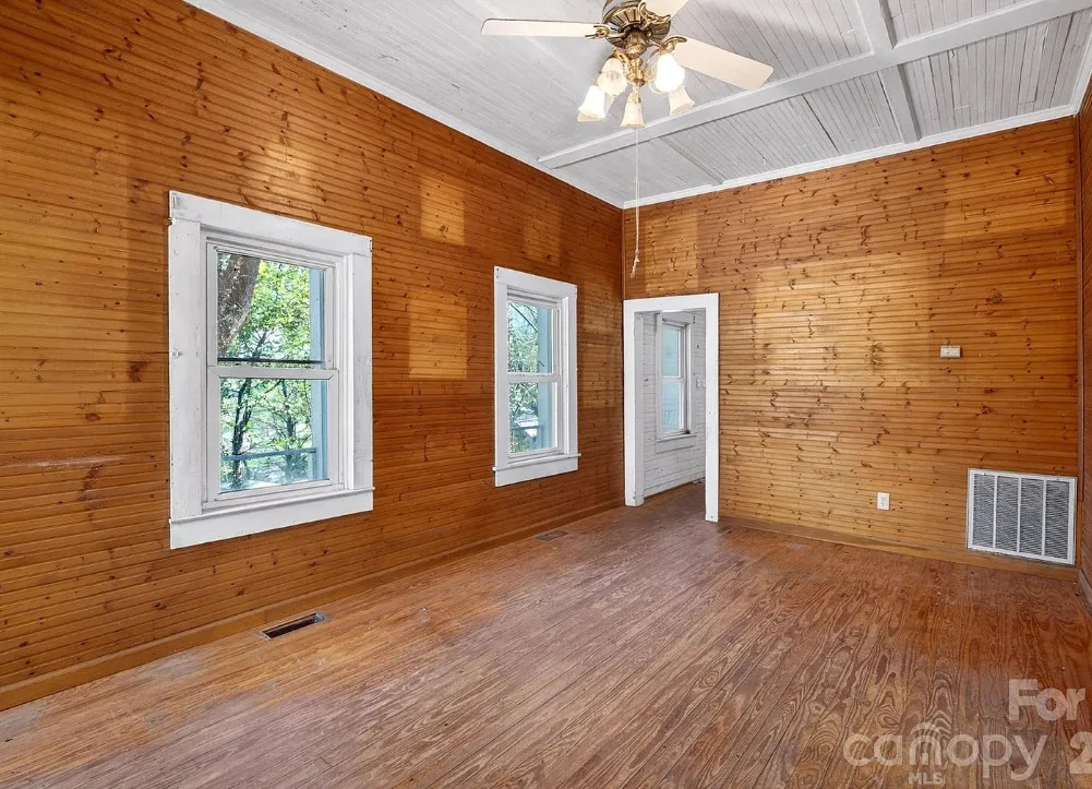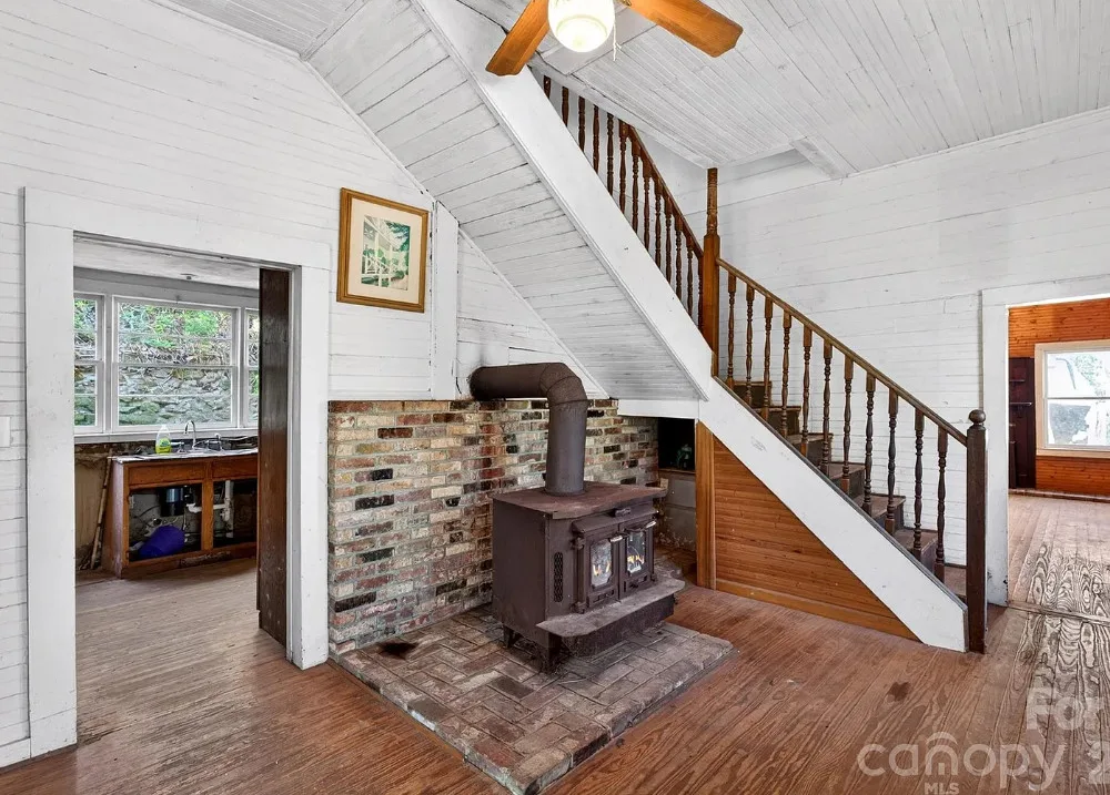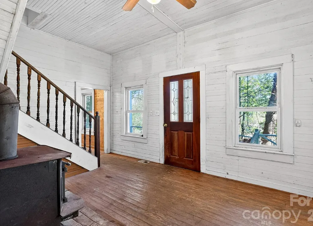 There are homes…and then there are stories. Perched quietly above the historic town of Saluda, NC since 1886, the J.L. “Daddy” Hart House is believed to be tied to one of Saluda’s earliest and enduring figures, James Leander Hart. Local accounts suggest he played a role in the early days of the railroad; some say even driving the first spike along the Saluda Grade. He was the local undertaker while running an general store and casket shop. He was also a builder of early structures that helped shape the town. While buyers should independently verify these details, the sense of history here is unmistakable. Time has left its mark here. The home retains original elements like wide porches, wood-paneled interiors, and a setting framed by mature trees offering a glimpse into its early character and the opportunity to bring it forward with intention. This is not a project for the faint of heart, however. The home is in significant disrepair and will require extensive renovation, including structural and system updates. It is being sold as-is, offering a blank canvas for those with vision and an appreciation for preservation. Saluda itself is a place where history and landscape meet. It is a storied railroad town now on the cusp of its next chapter with the planned Saluda Grade Trail. As interest in the area continues to grow, opportunities like this, where history, location, and potential converge, are increasingly rare. For those drawn to the idea of bringing something meaningful back to life, this is a chance to be part of Saluda’s story