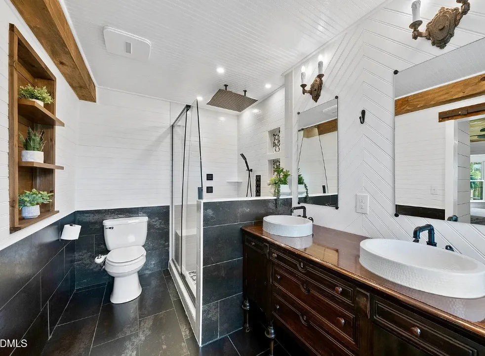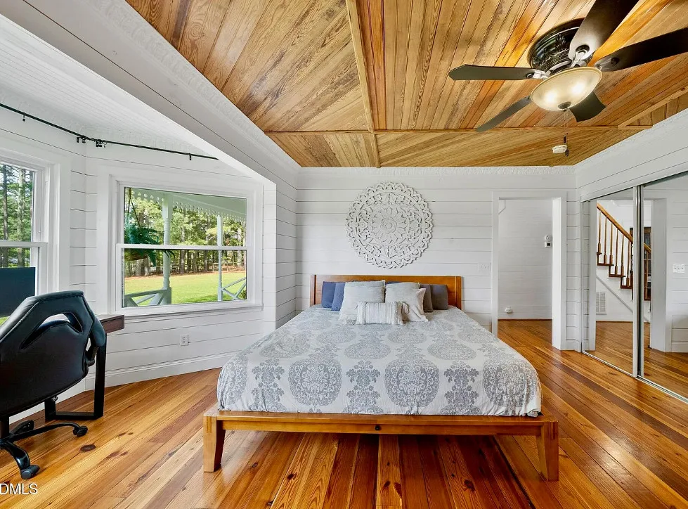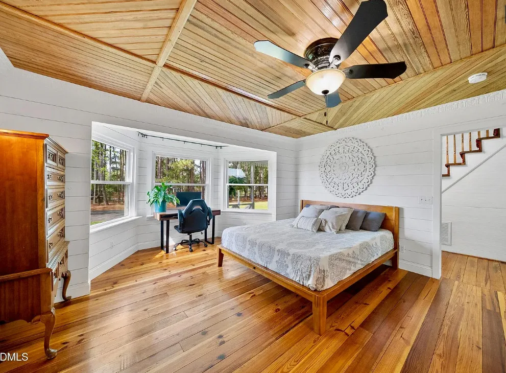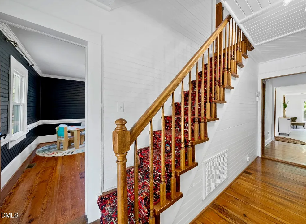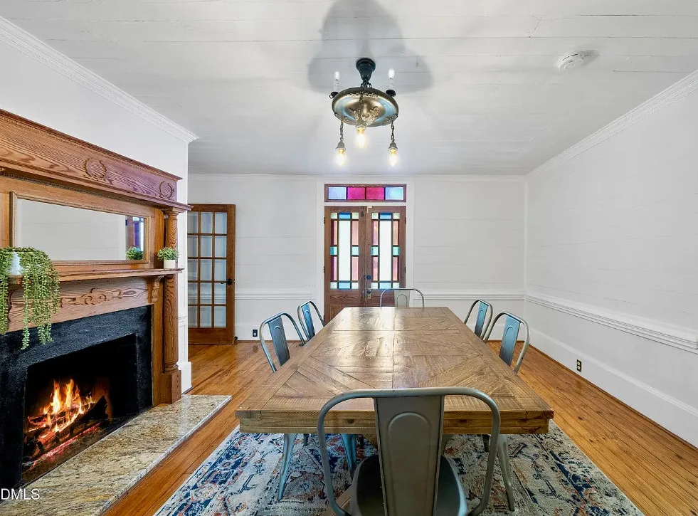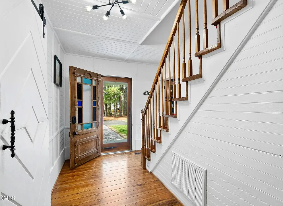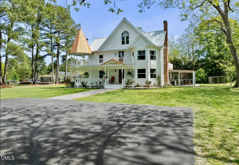 Porch goals! This house looks like a dollhouse from the exterior! What would you do inside? The house was built in 1895. It is located on 1.6 acres in Sanford, North Carolina. The house features double front porches, original wood floors, wide baseboards, chair rails, crown moulding, bead board, stained glass, vintage light fixture, original mantels and a screened in back porch. If it were mine, the house needs some color on the walls, but it is like a blank slate. Sanford is a growing area because of Raleigh’s growth. Three bedrooms, three bathrooms and 2,789 square feet. $625,000