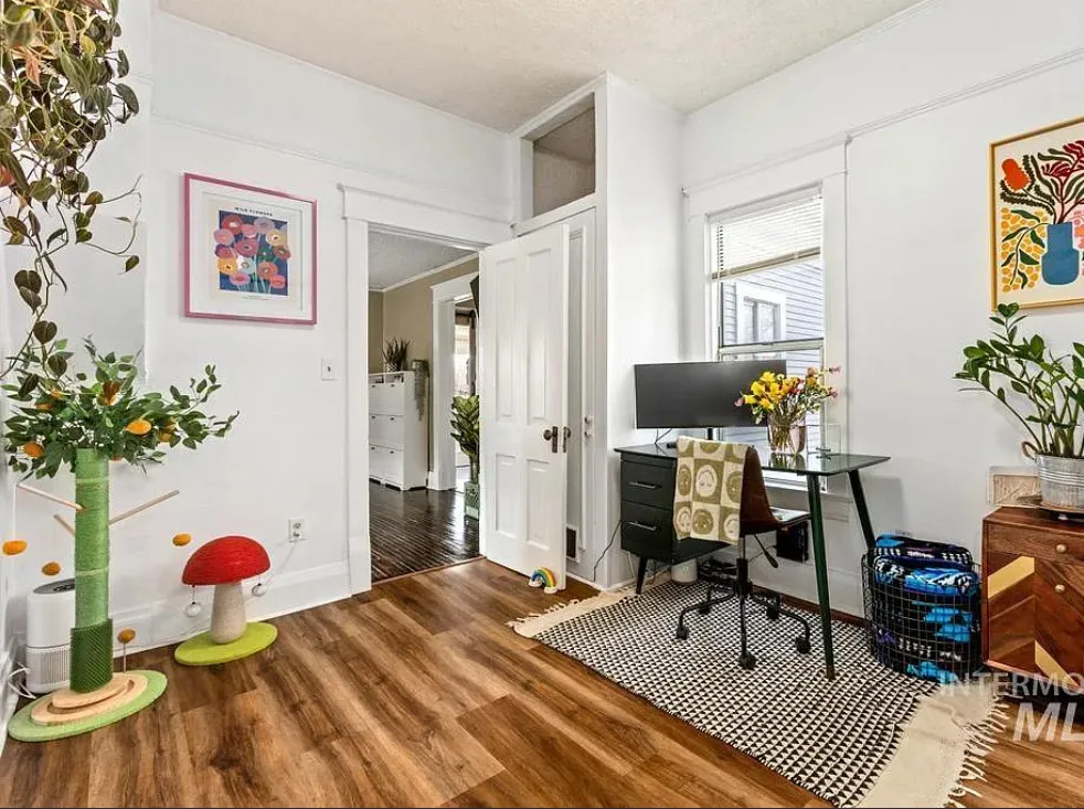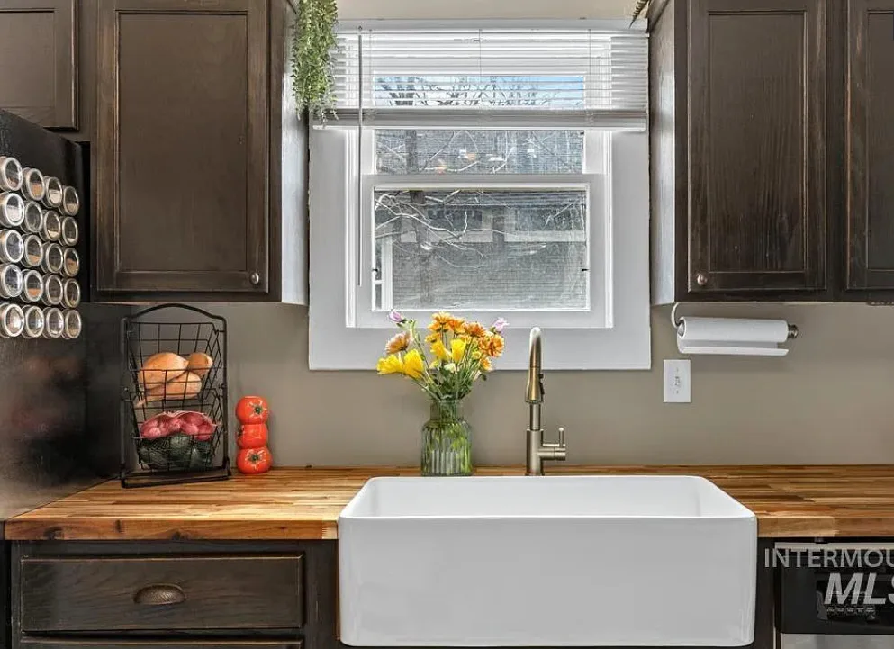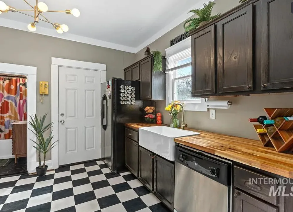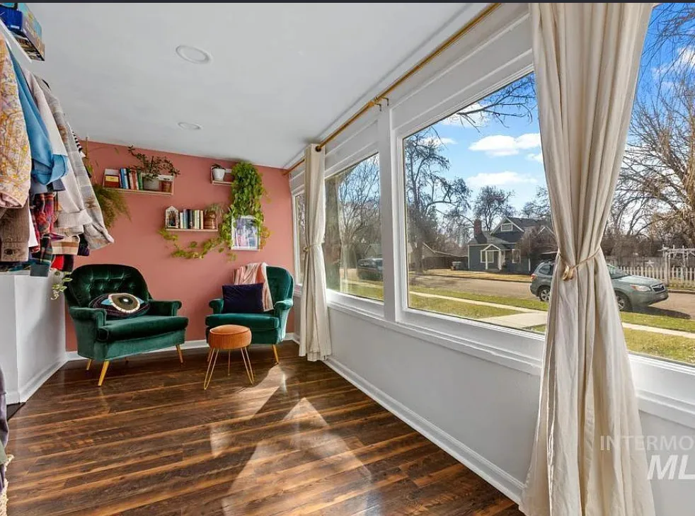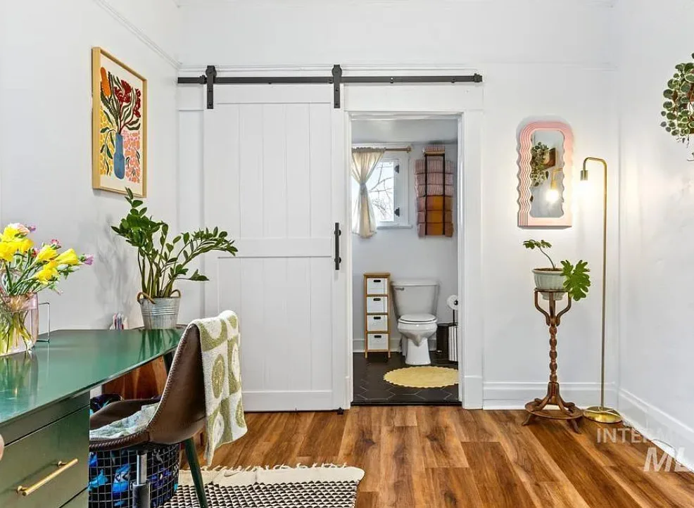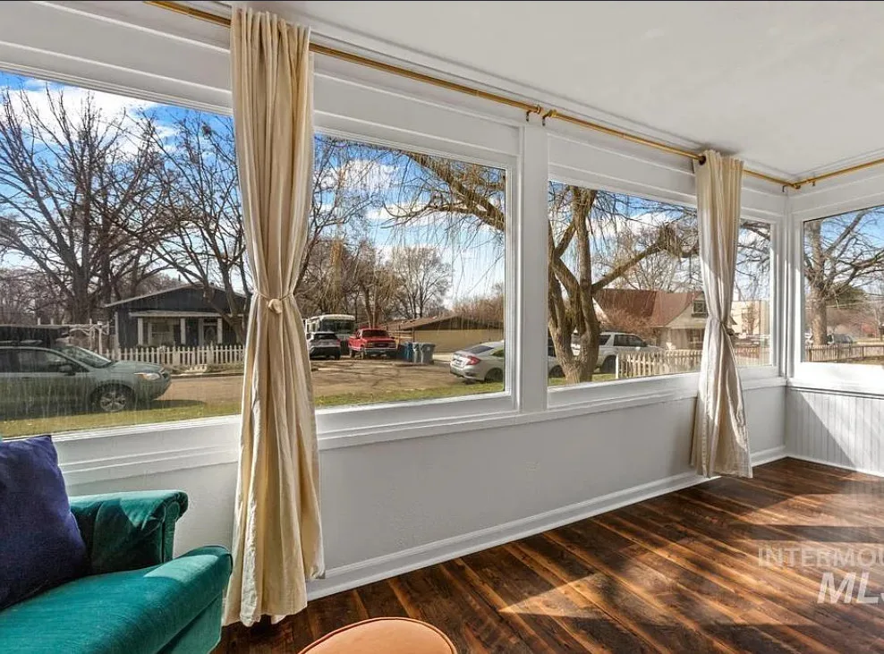 Walking distance to College of Idaho! Charming historic cottage nestled in the Caldwell Historic District, full of character and thoughtful modern updates. This classic home has the perfect & safe college location. This inviting home features 2 bedrooms and 1 beautifully remodeled bathroom, blending timeless charm with comfortable living. Welcoming front porch invites you inside where the living room has original hardwood floors, adding warmth and authenticity to the space. The kitchen is both stylish and functional, featuring gorgeous Acacia wood butcher block countertops, a ceramic farmhouse sink, new luxury vinyl tile flooring, some new plumbing & electrical. Just off the kitchen, a charming alcove creates the perfect coffee bar or beverage station, adding both convenience & character. The bright sunroom offers wonderful natural light & doubles as a spacious walk-in closet for the primary bedroom, creating a unique & practical addition. Recent updates throughout include new interior paint (2025), updated lighting fixtures, a new barn door, & new flooring in the second bedroom. The bathroom remodel is fresh & charming. Major improvements bring peace of mind with a roof & water heater approximately five years old along with a new cellar door. Outside, the oversized lot offers endless possibilities, with alley access parking, a storage shed, & ample space to build a shop or ADU.