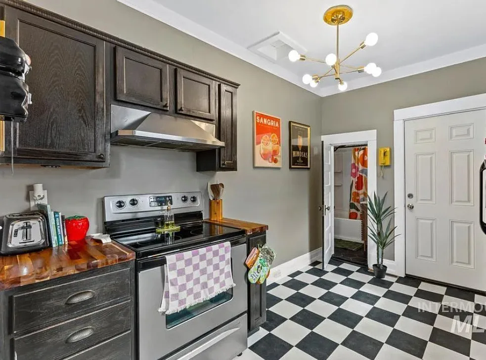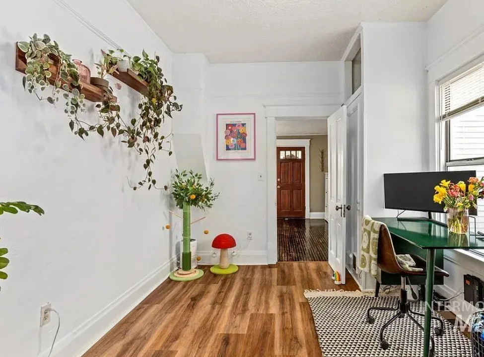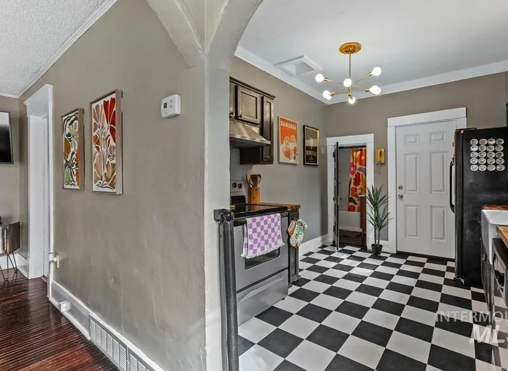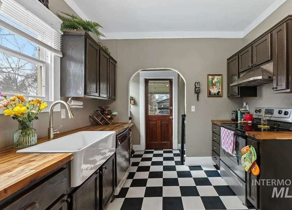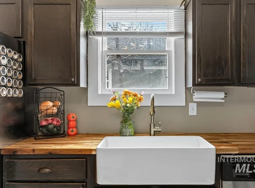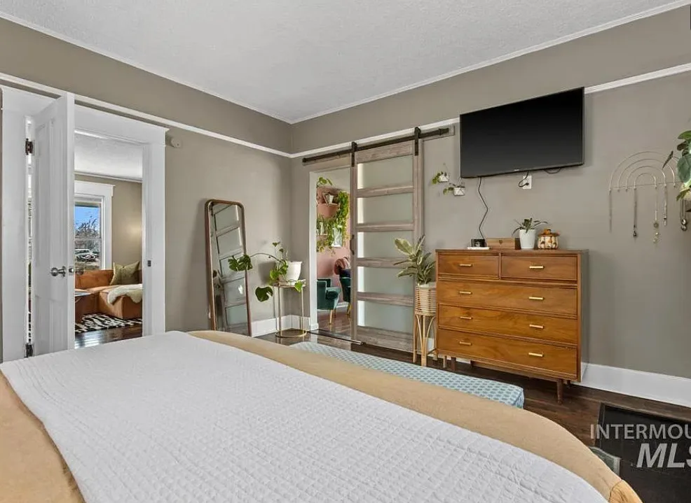 Walking distance to College of Idaho! Charming historic cottage nestled in the Caldwell Historic District, full of character and thoughtful modern updates. This classic home has the perfect & safe college location. This inviting home features 2 bedrooms and 1 beautifully remodeled bathroom, blending timeless charm with comfortable living. Welcoming front porch invites you inside where the living room has original hardwood floors, adding warmth and authenticity to the space. The kitchen is both stylish and functional, featuring gorgeous Acacia wood butcher block countertops, a ceramic farmhouse sink, new luxury vinyl tile flooring, some new plumbing & electrical. Just off the kitchen, a charming alcove creates the perfect coffee bar or beverage station, adding both convenience & character. The bright sunroom offers wonderful natural light & doubles as a spacious walk-in closet for the primary bedroom, creating a unique & practical addition. Recent updates throughout include new interior paint (2025), updated lighting fixtures, a new barn door, & new flooring in the second bedroom. The bathroom remodel is fresh & charming. Major improvements bring peace of mind with a roof & water heater approximately five years old along with a new cellar door. Outside, the oversized lot offers endless possibilities, with alley access parking, a storage shed, & ample space to build a shop or ADU.