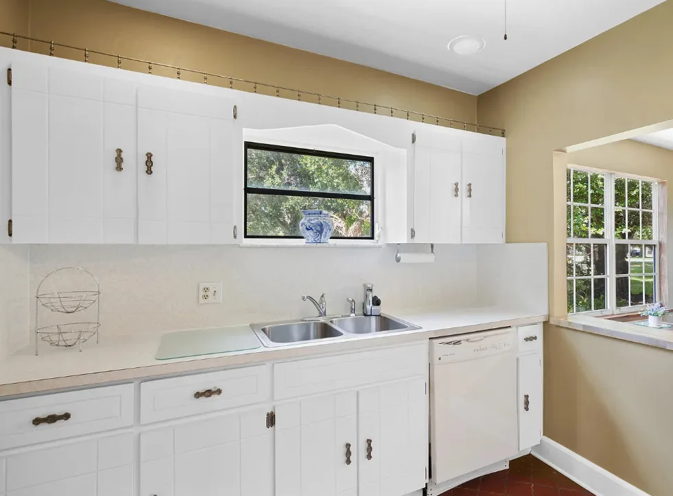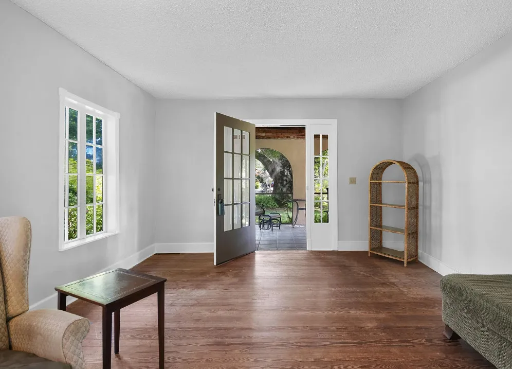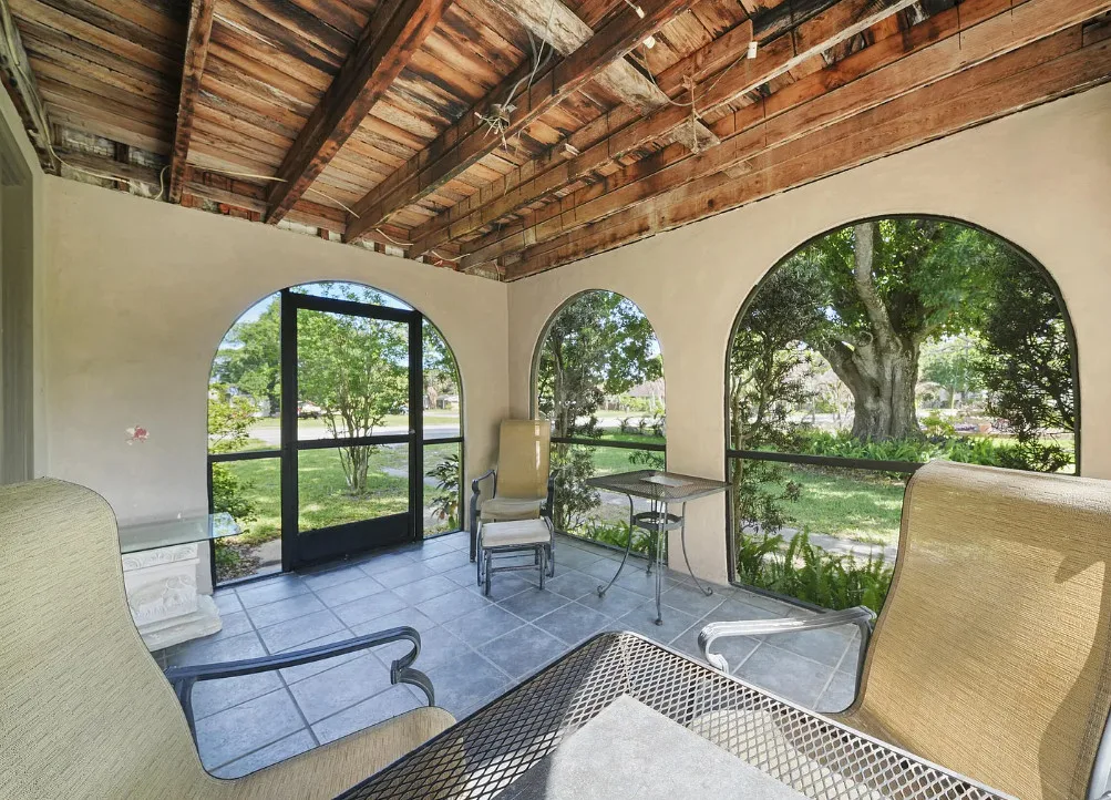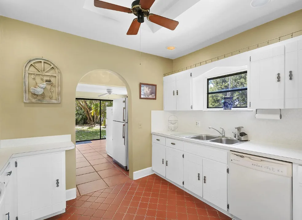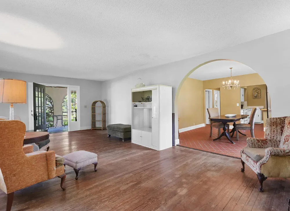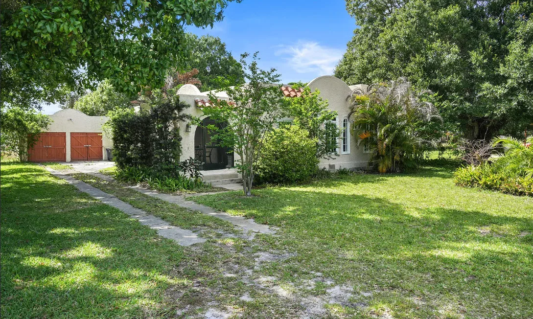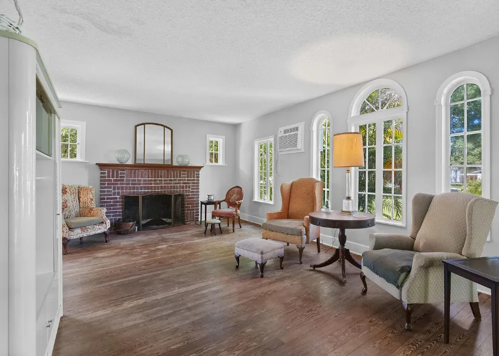 This house looks like a diamond in the rough to me! It has a working wood burning fireplace. The house was built in 1925. It is located on .4 acre in Ft. Pierce, Florida. The house features a covered porch, wood floors, wide baseboards, pretty windows, french doors and arched entryways. The property is fenced and there are avocado trees and cherry trees. There is a detached garage on the property. Three bedrooms, two bathrooms and 1,466 square feet. $217,900