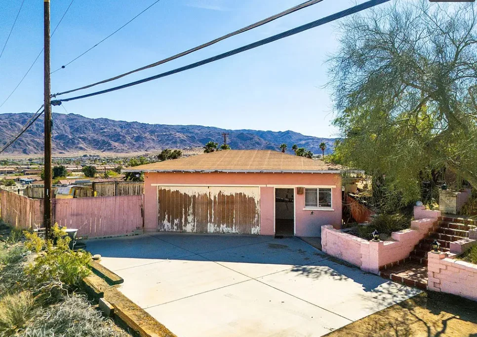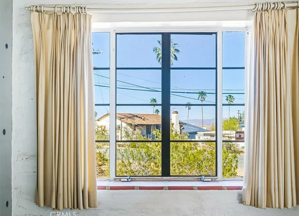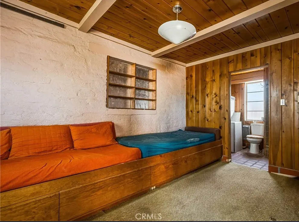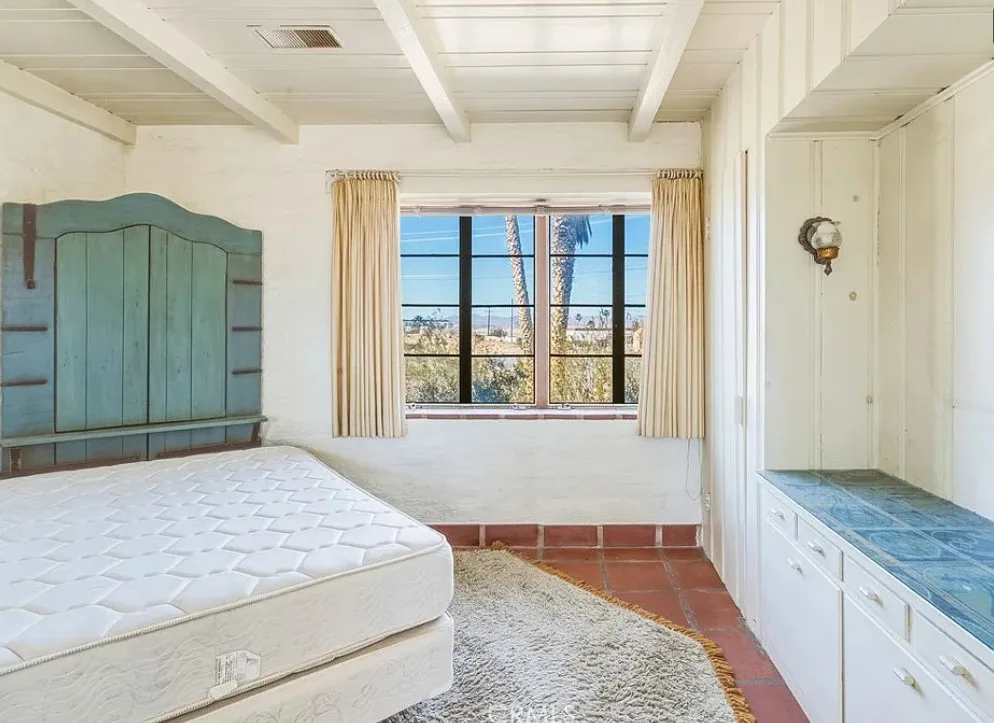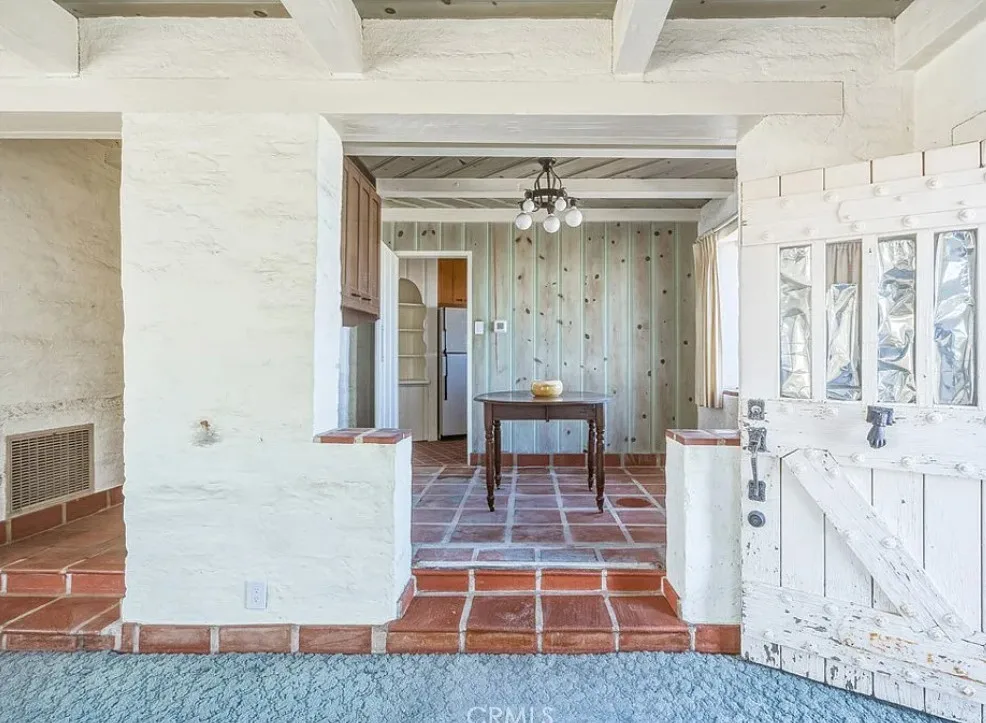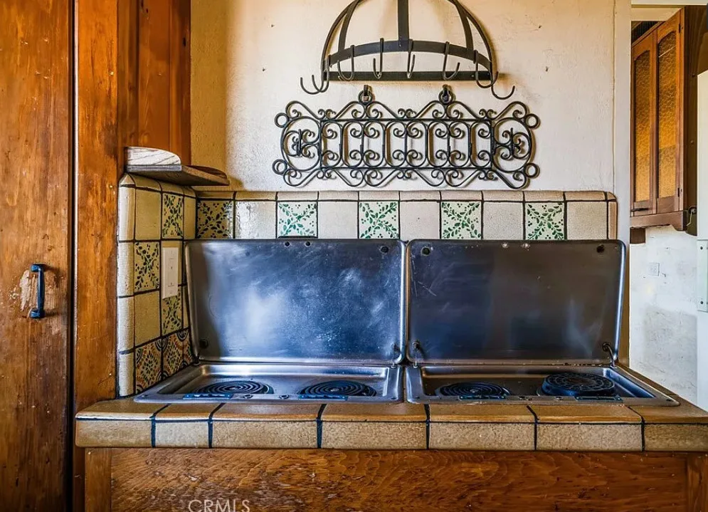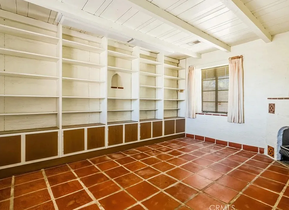 Those sure are some unique fireplaces! The house has pretty details. The home was built in 1945. It is located on .68 acre in Twentynine Palms, California. The house features exposed beams, unique fireplaces, great front door, custom tile backsplash and built-in bookshelves. There is a large detached garage. Three bedrooms, two bathrooms and 1,434 square feet. $280,000