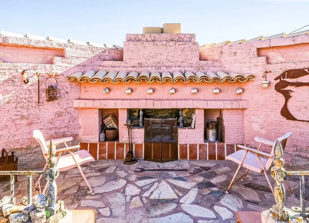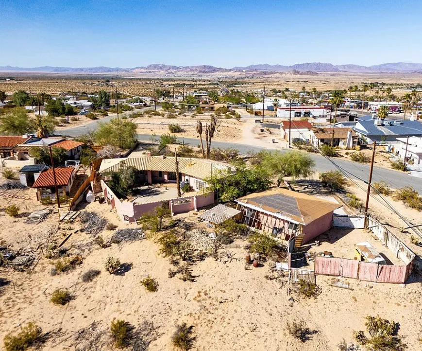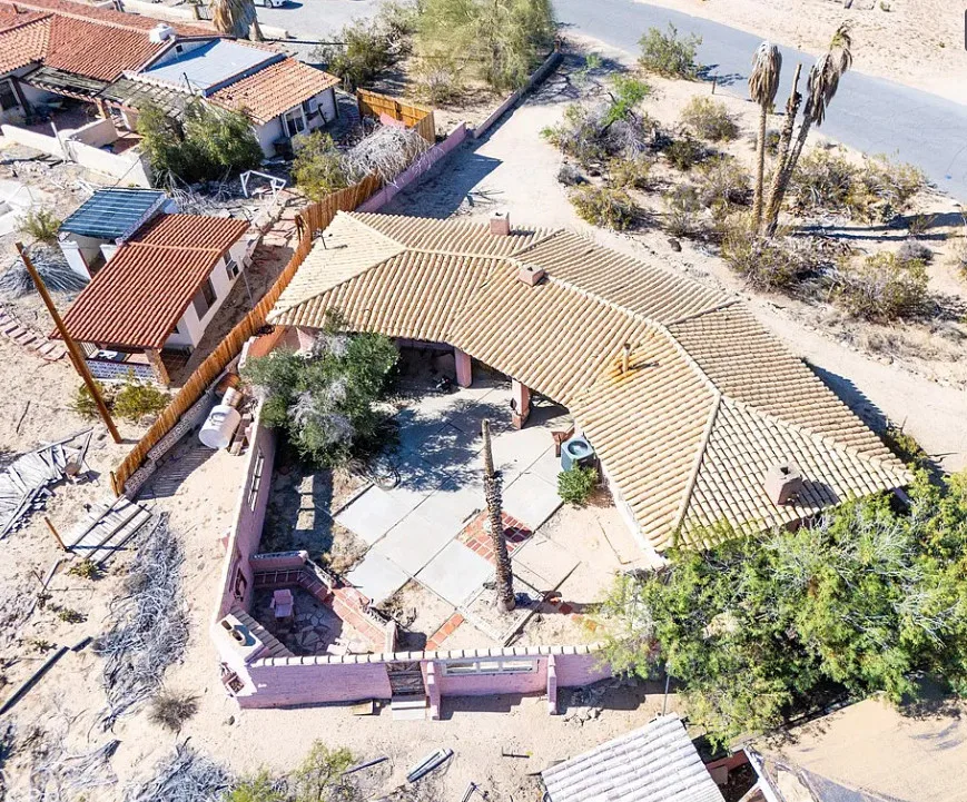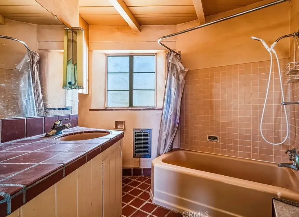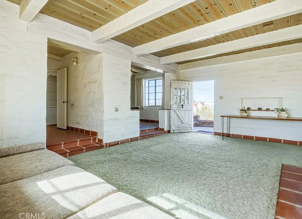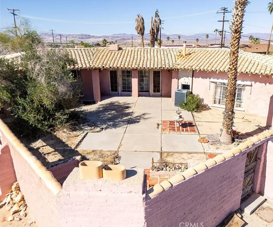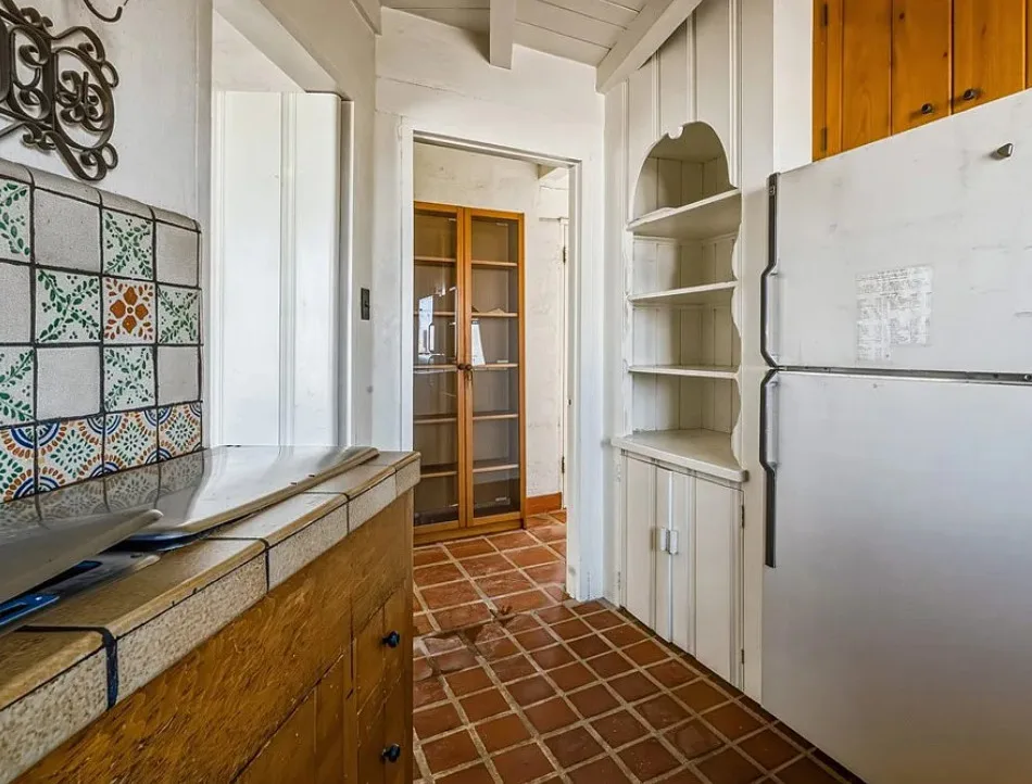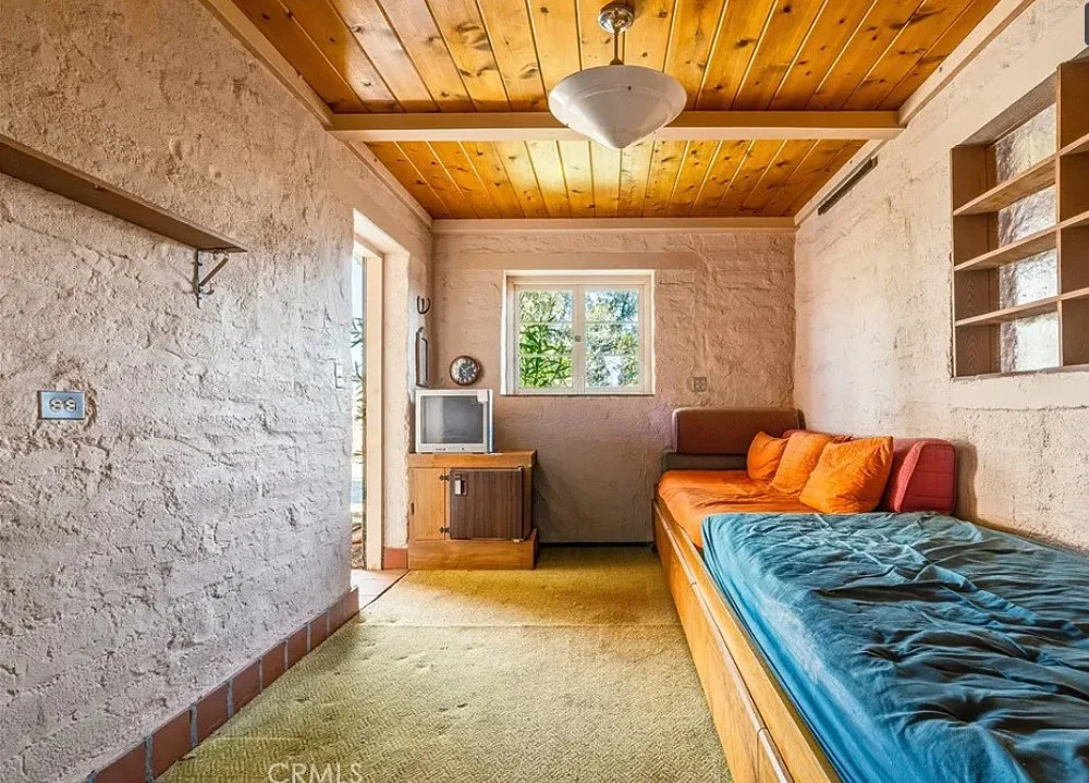 Those sure are some unique fireplaces! The house has pretty details. The home was built in 1945. It is located on .68 acre in Twentynine Palms, California. The house features exposed beams, unique fireplaces, great front door, custom tile backsplash and built-in bookshelves. There is a large detached garage. Three bedrooms, two bathrooms and 1,434 square feet. $280,000