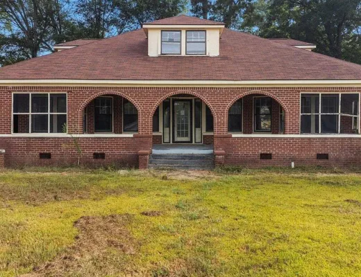 Porch goals! Looking at the summer pictures of this house make me so ready for hot weather. The house was built in 1905. It is located on 5.44 acres in New Castle, Virginia. The house features a large wrap around front porch, original wood floors that have been refinished, pretty staircase, wainscoting, baseboards, built-in bookshelves, vintage light fixture and a spacious kitchen. There area couple of detached buildings on the property and there is a circular driveway. Four bedrooms, two bathrooms and 2,528 square feet. $434,950