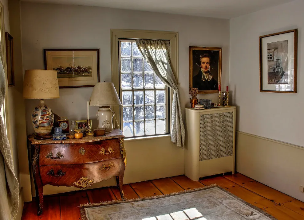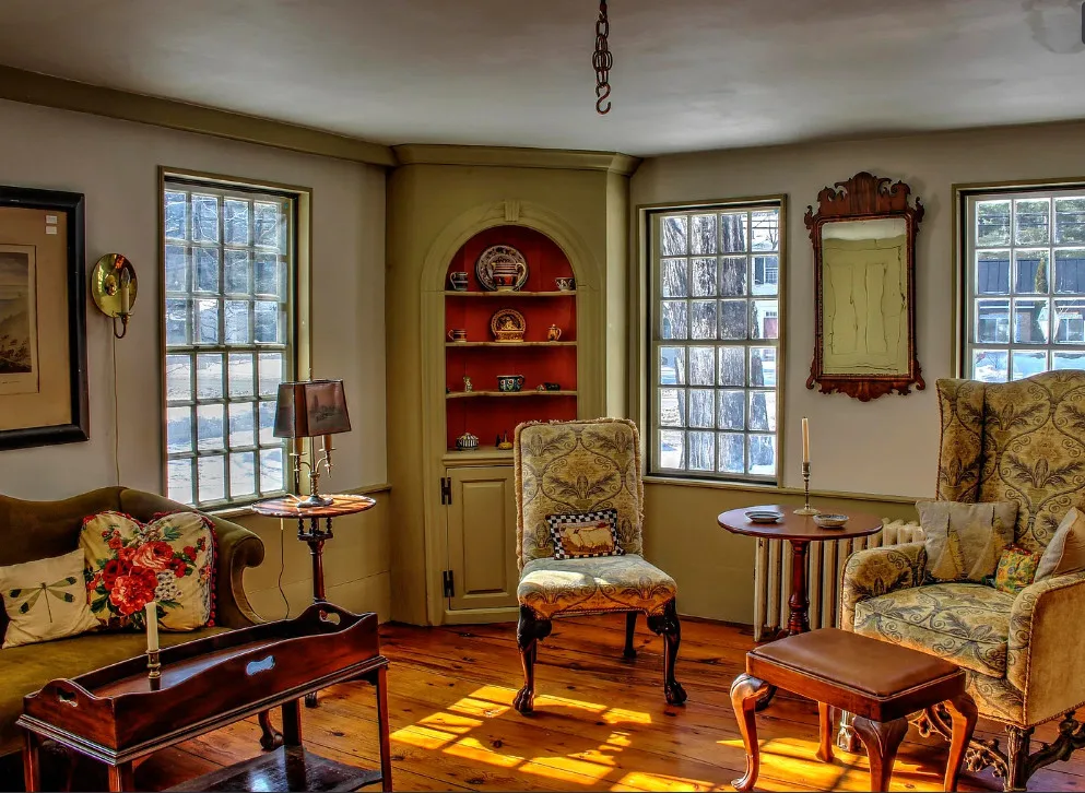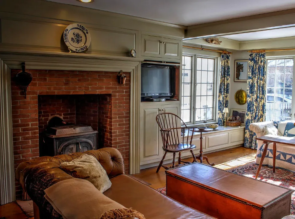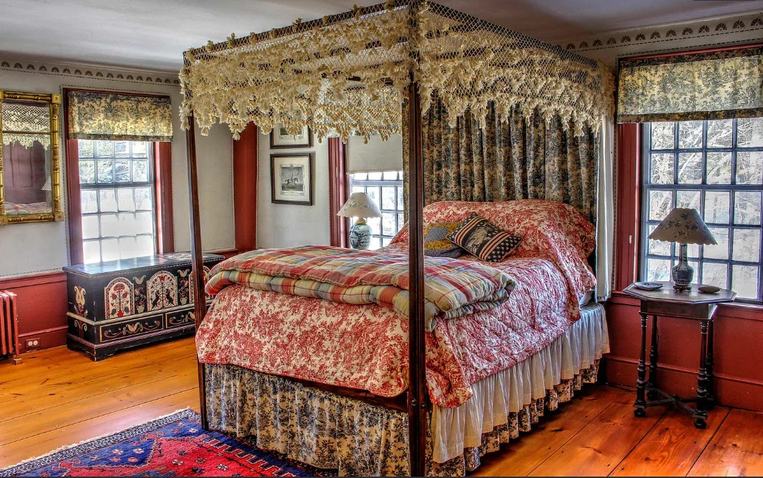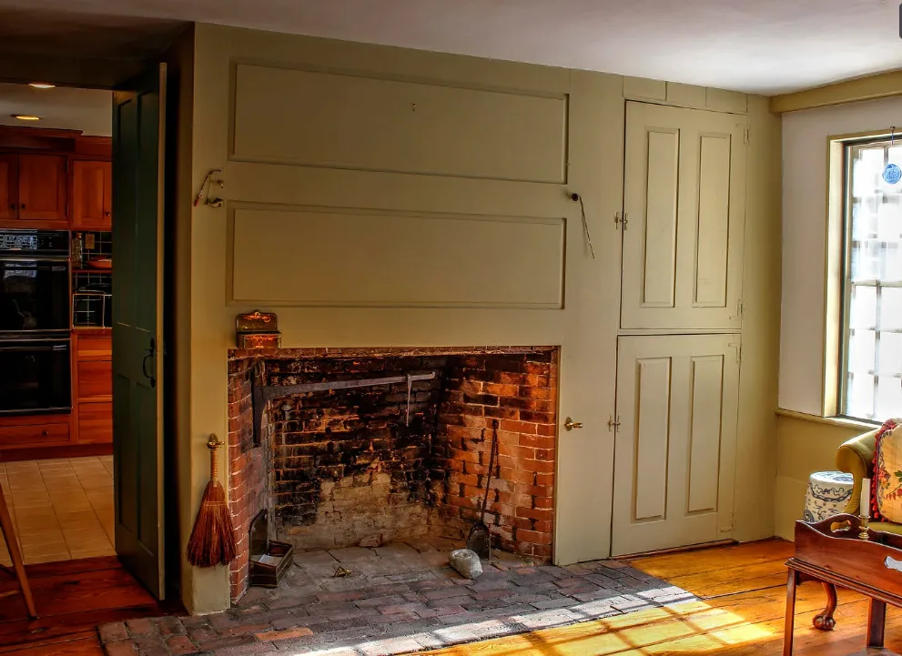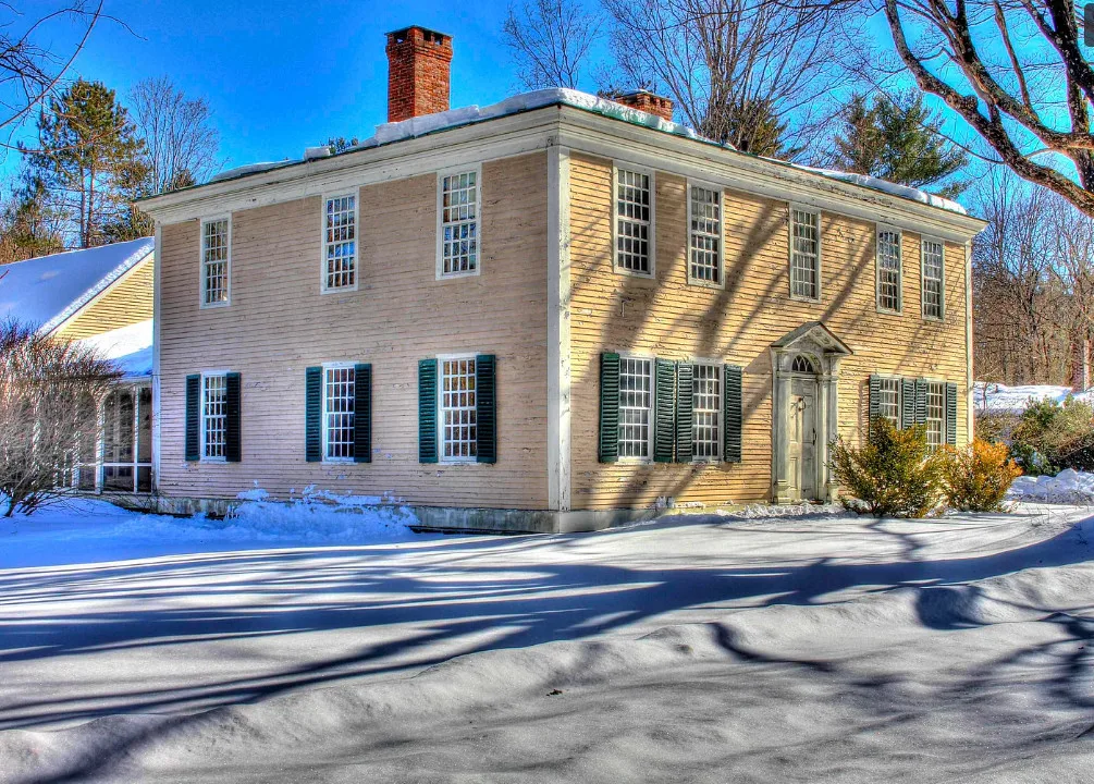This is a beautiful house! Love the original details! Those fireplaces are amazing! The house was built in 1767. It is located on 1.4 acres in Swanzey, New Hampshire. The house features beautiful wood floors, paneled wainscoting, Quaker made cabinetry, built-ins, chair rails, amazing front door with original hardware, wide plank wood floors, screened in porch and a slate patio. There is an attached two car garage and a detached carriage house. Four bedrooms, three bathrooms and 3,131 square feet. $499,000