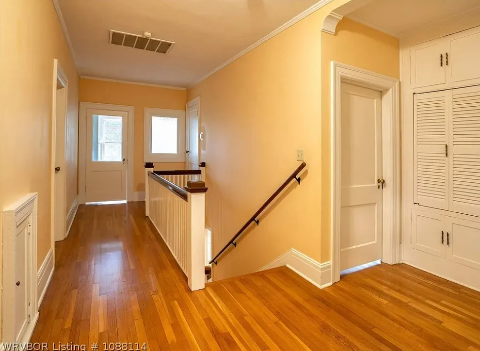 Pretty staircase and details! Love the stained glass and the matching carriage house! The home was built in…