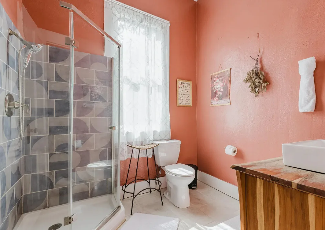 They are not afraid of color! Not sure how I feel about the foyer wallpaper, but this is…