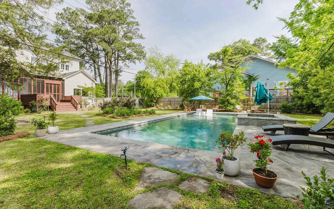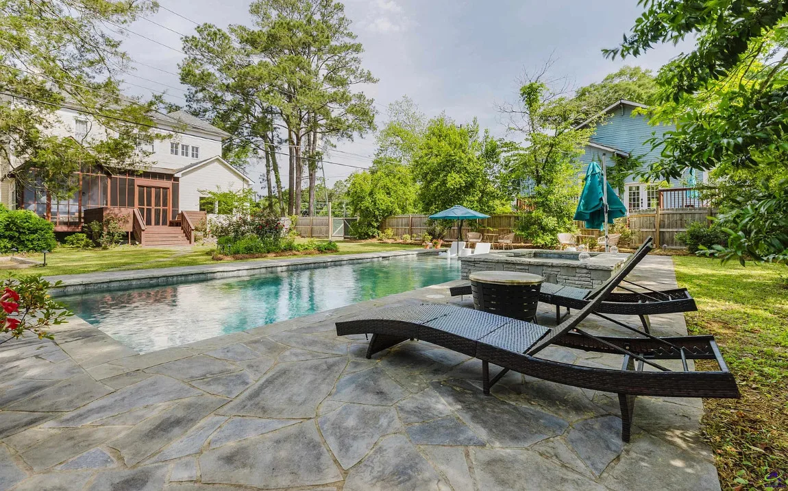 Really pretty pool! This house was featured on the Discovery Channel and in Georgia Southwest Living Magazine. There is even a Bocce Ball Court. The house…
