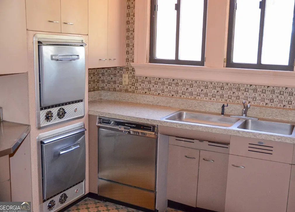 Kitchen has a vintage look to it! Nice ceilings! Over two acres in Georgia. $394,900