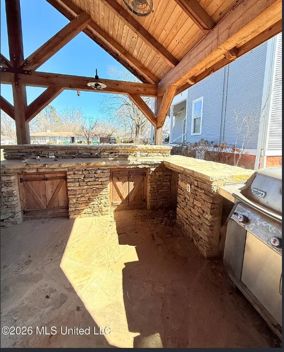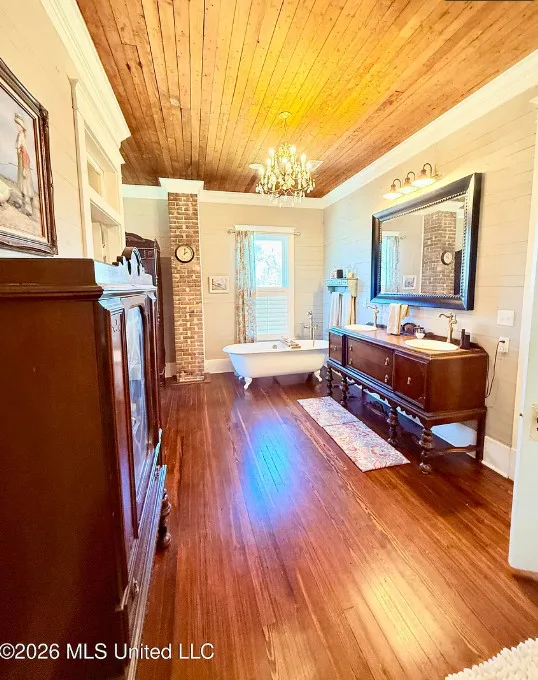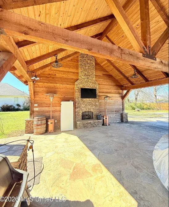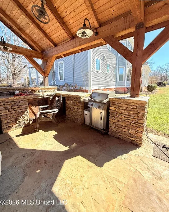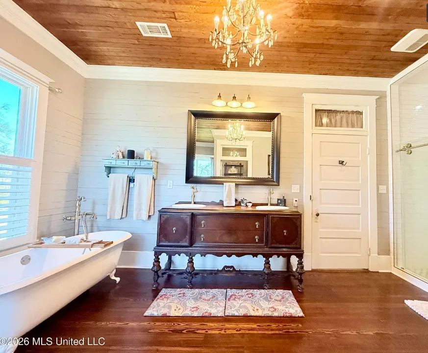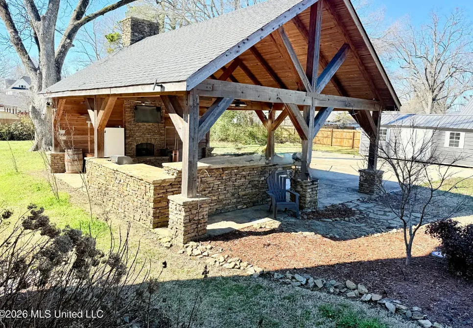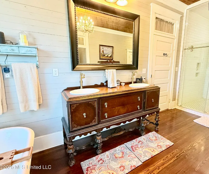 I love the bathroom that has the claw foot tub! The kitchen is nice too! The outdoor fireplace patio is pretty! The house was built in…