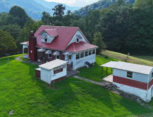 On 65 acres in West Virginia. Multiple outbuildings, including old blacksmith shop. $212,000